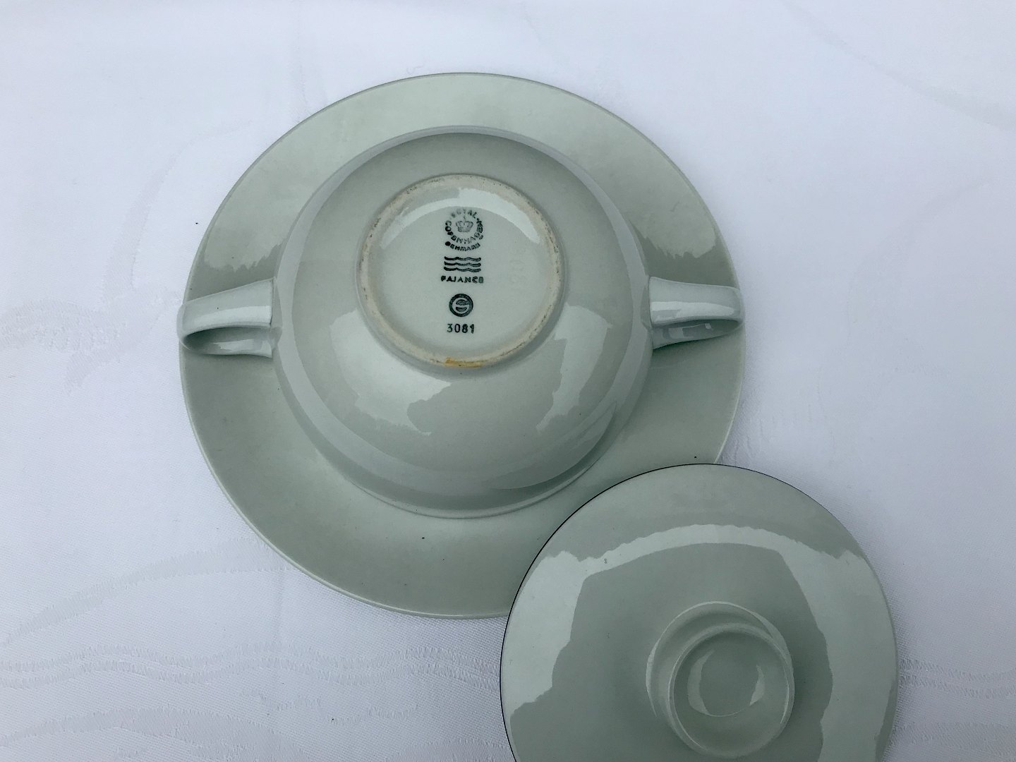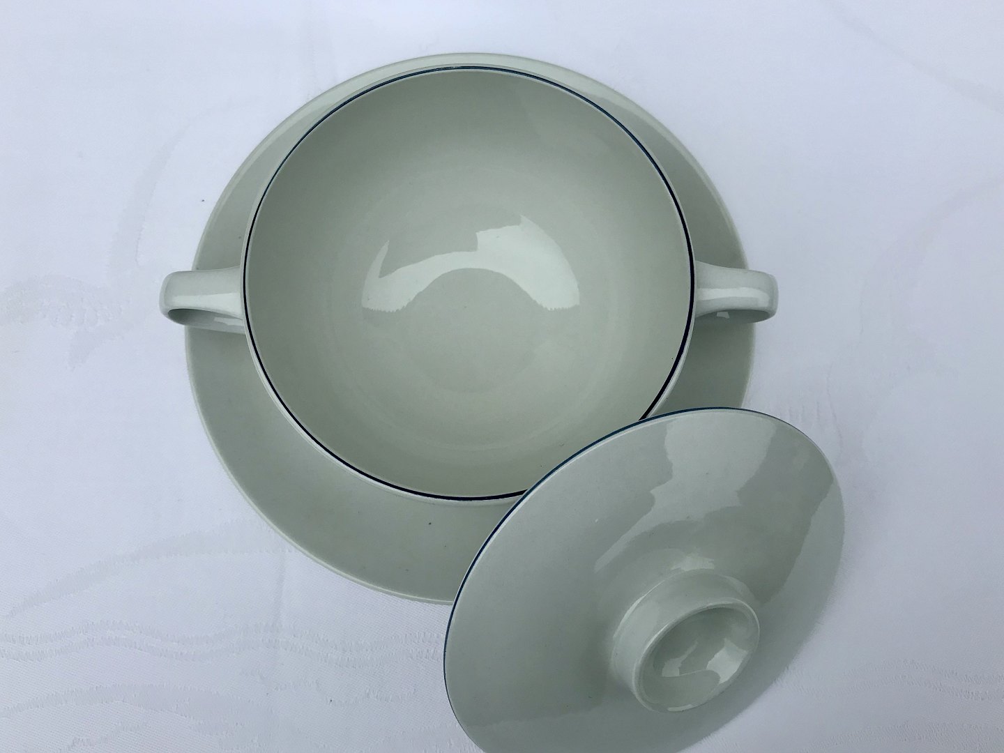 | Royal Copenhagen, Aluminia, Blå kant, Bouillon sæt med låg, 6,5cm høj, 11cm i diameter, 1.Sortering, Design Grethe Meyer *Pæn stand*