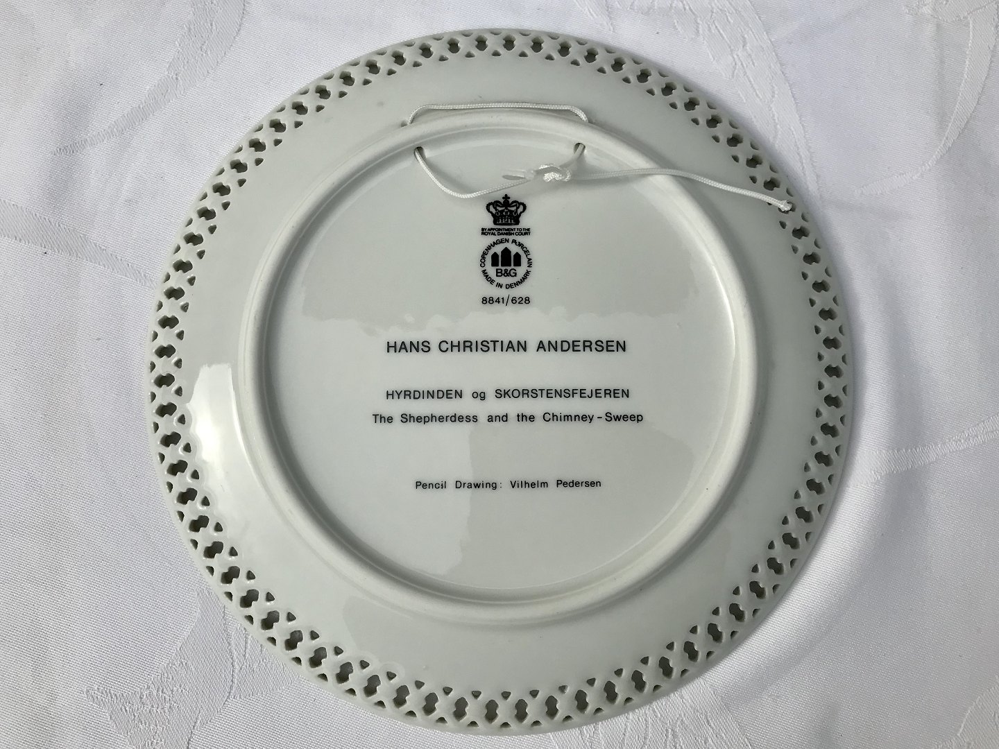 Bing and Grondahl, Platte # 8841/628, H.C. Andersen, Shepherdess and chimney sweep, 21.5cm in diameter * Perfect condition *