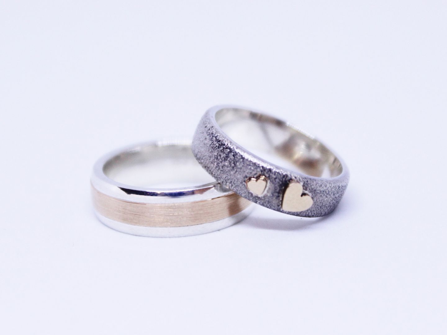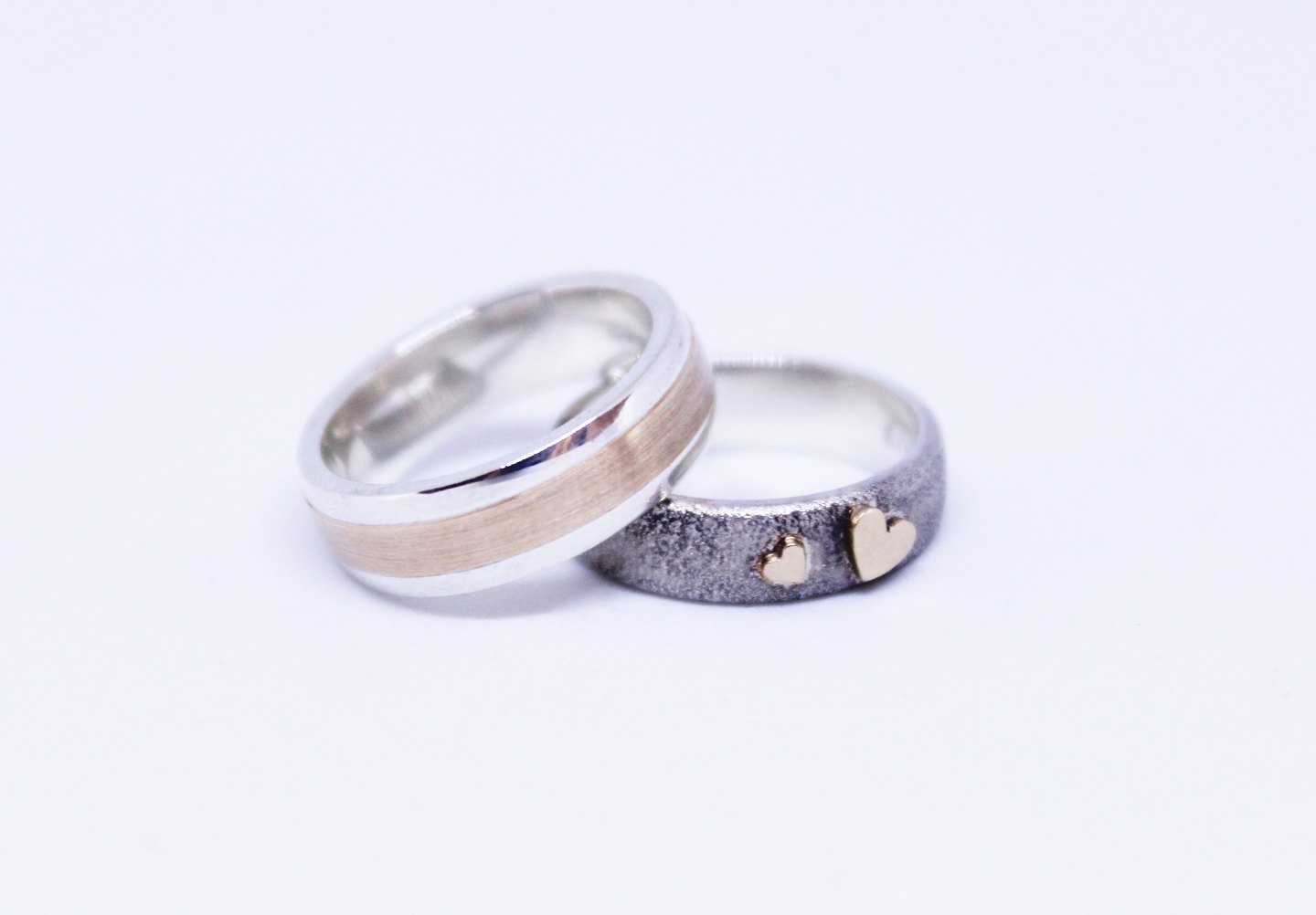 A pair of wedding rings of 925 sterling silver and 14 ct. gold, stamped Br.J. by Bræmer-Jensen.