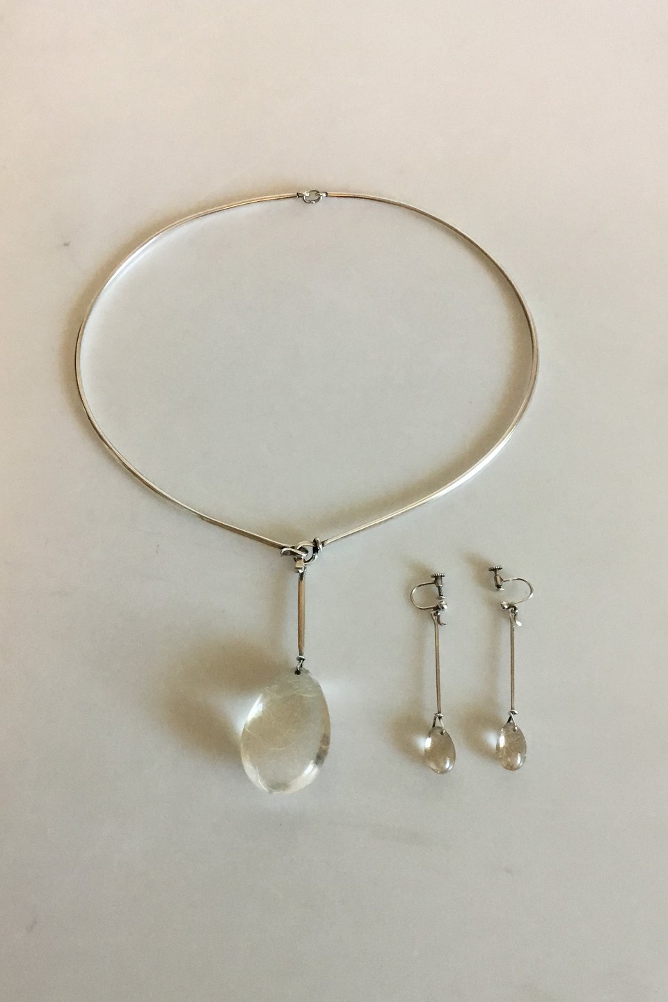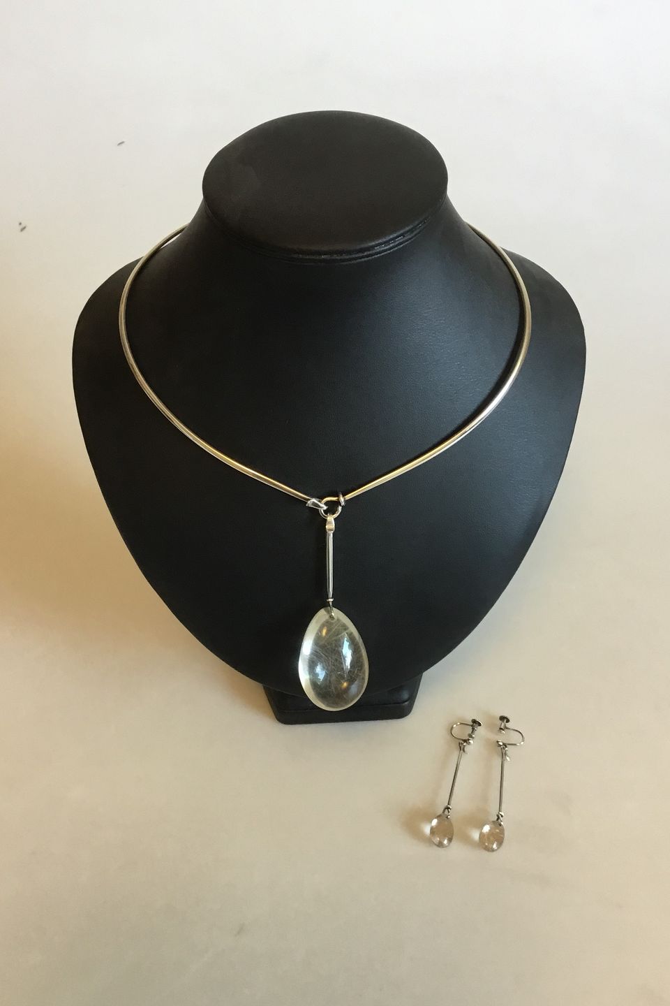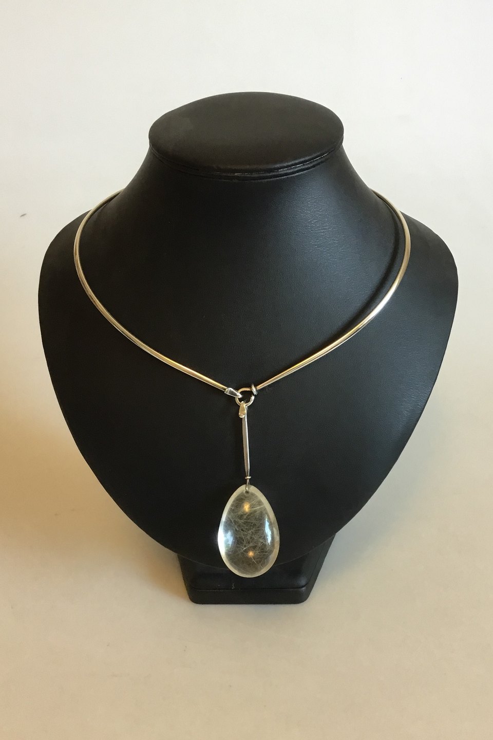 Georg Jensen Sterling Sølv Sæt bestående af halsring No 114 med vedhæng af Rutil Quartz No 131og tilhørende ørenringe med skruelås. Designet af Vivianna Torun Bülow-Hübe
