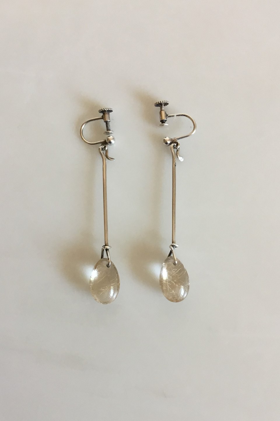 Georg Jensen Sterling Sølv Sæt bestående af halsring No 114 med vedhæng af Rutil Quartz No 131 og tilhørende ørenringe med skruelås. Vedhæng måler 8 cm og ørenringene måler 5,5 cm. Designet af Vivianna Torun Bülow-Hübe