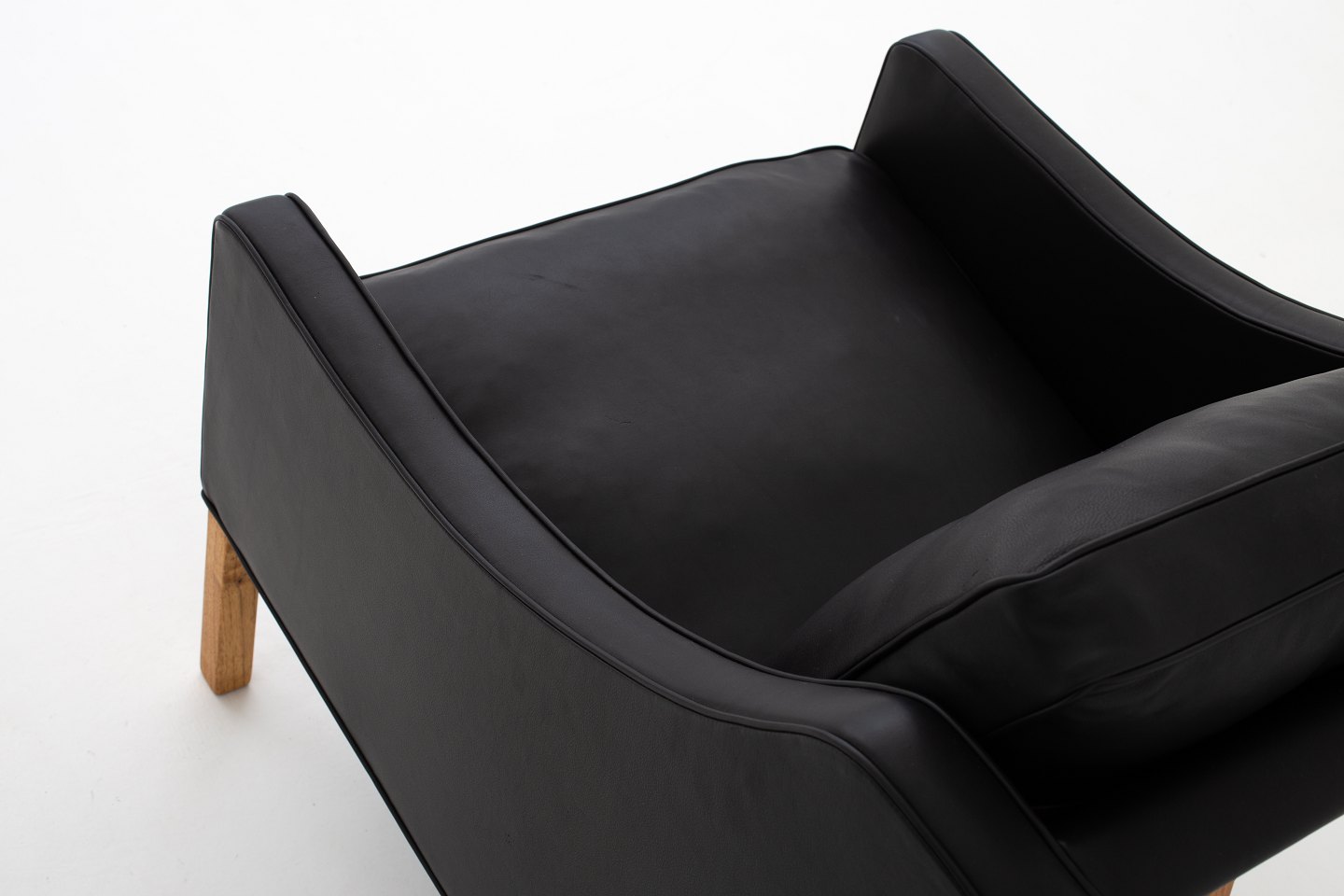 BM 2207 - Nybetrukket lænestol i sort Pleasure-læder og ben i teak. KLASSIK tilbyder polstring af lænestolen med stof eller læder efter eget ønske.