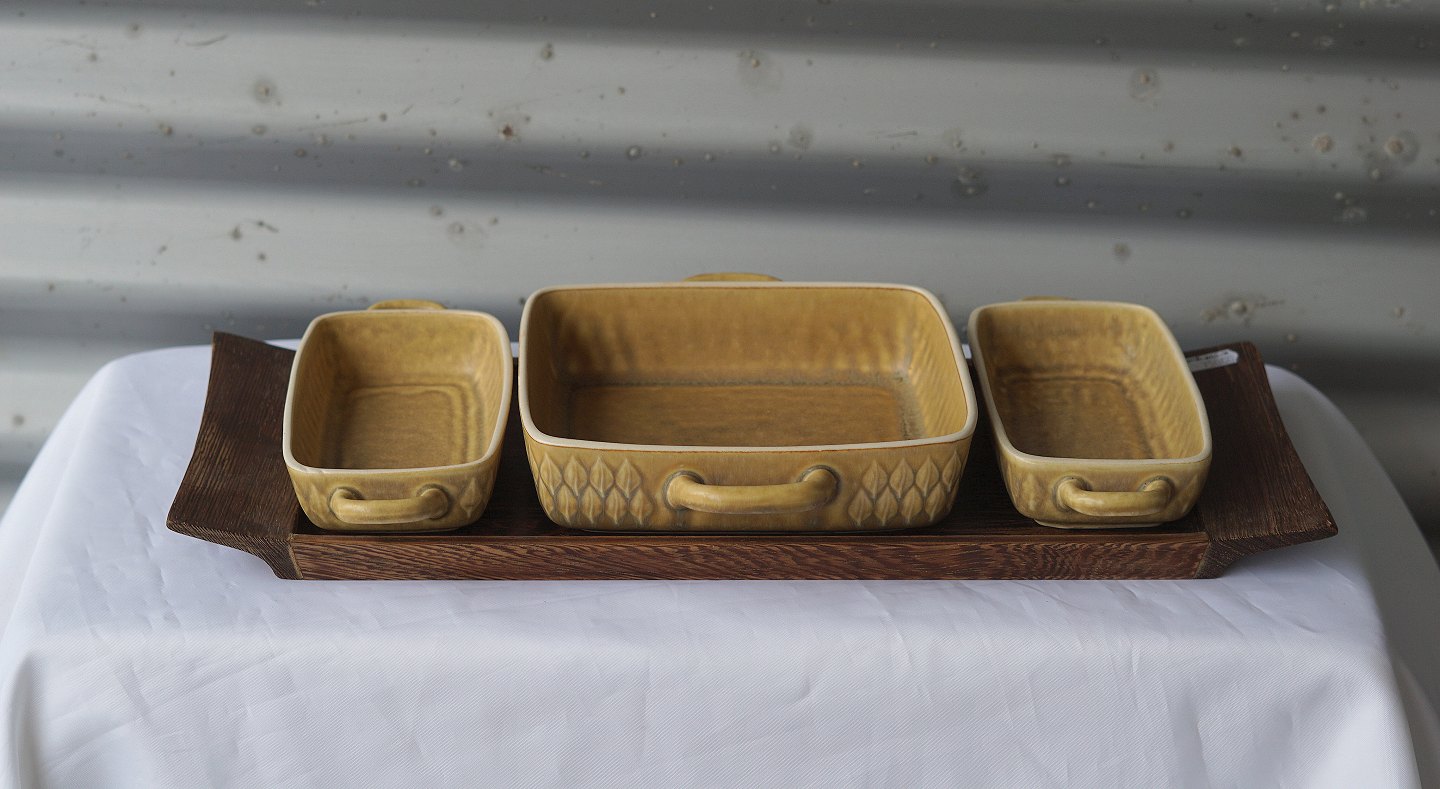 Cabaretfad, med skåle fra Relief, fejl i træ i den ene ende af bakken, kan laves.