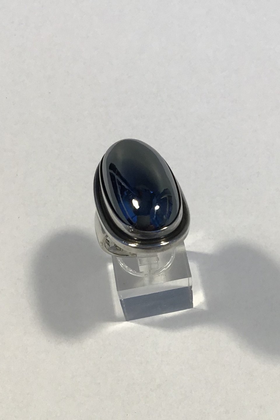 Georg Jensen Sterling Silver Ring No 46E with Hematite Stone. Ring Size 51 / US 5½. Weighs 25.6 gr / 0.90 oz.