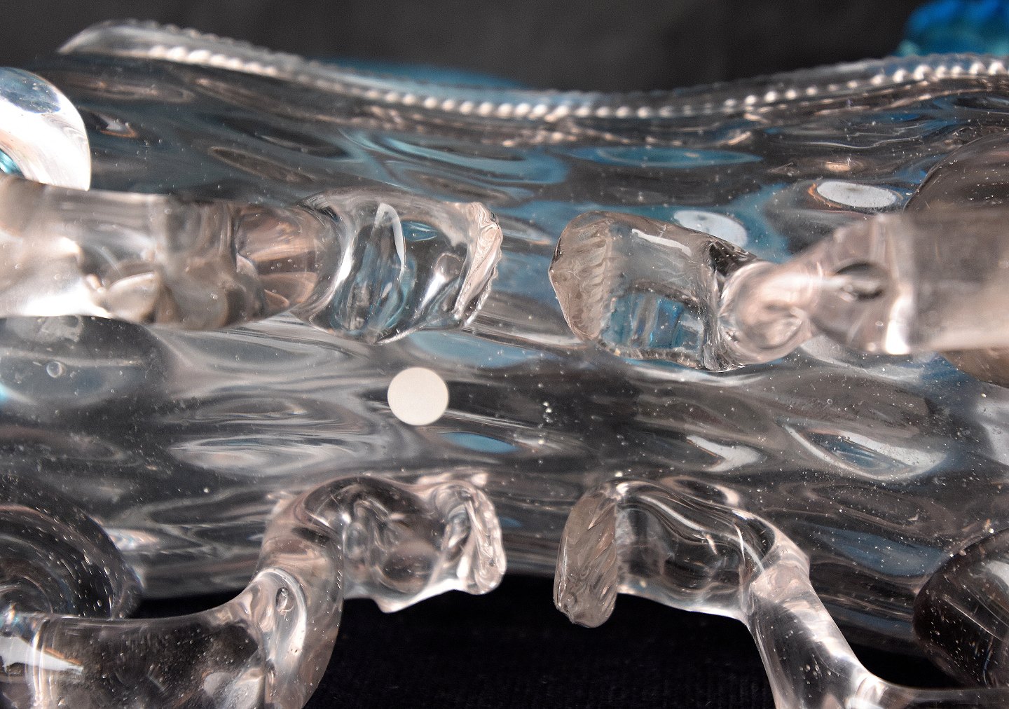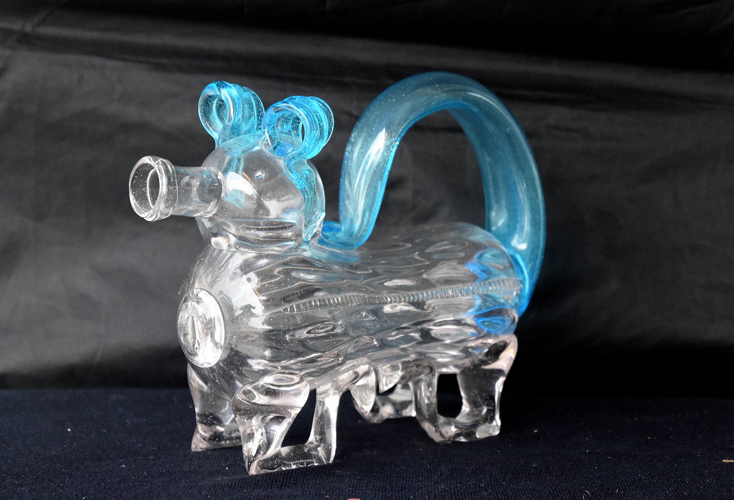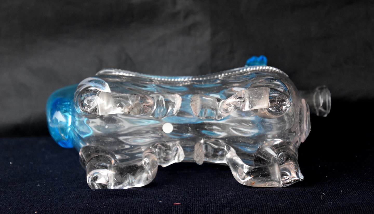 Snapsehund glas, med blå hale som hank og påsatte blå ører