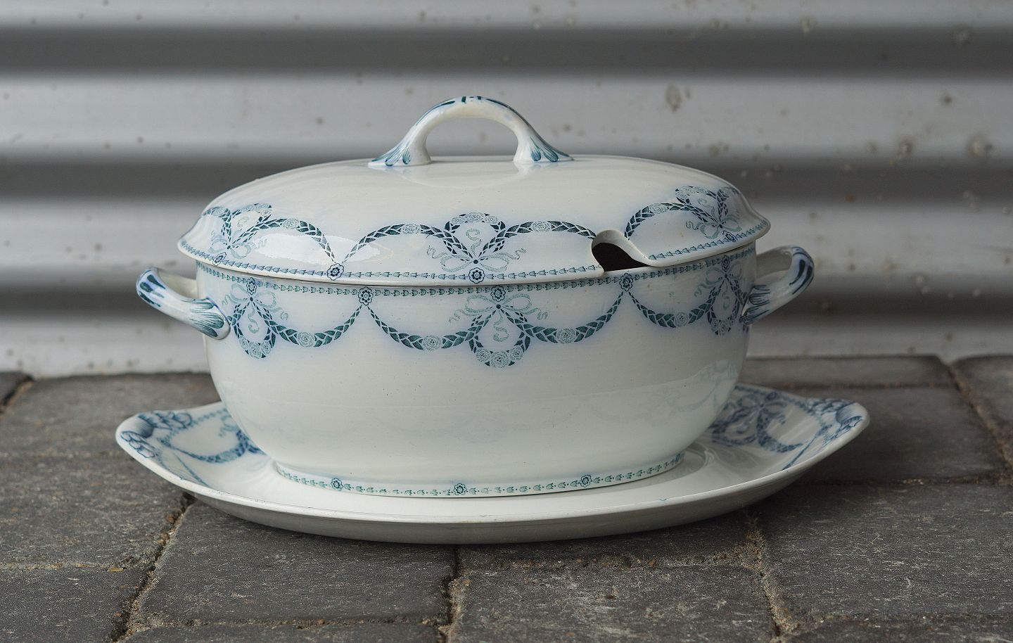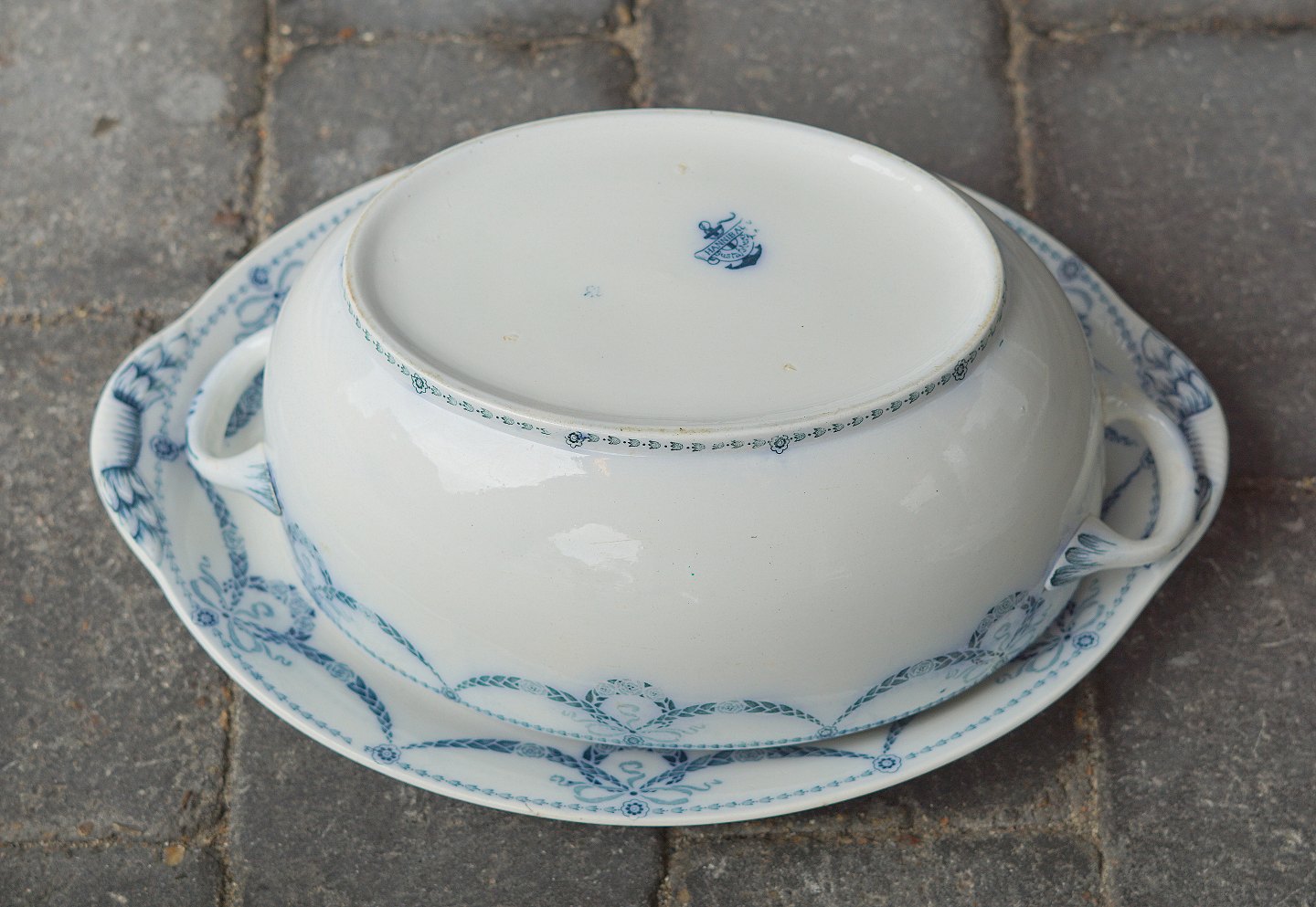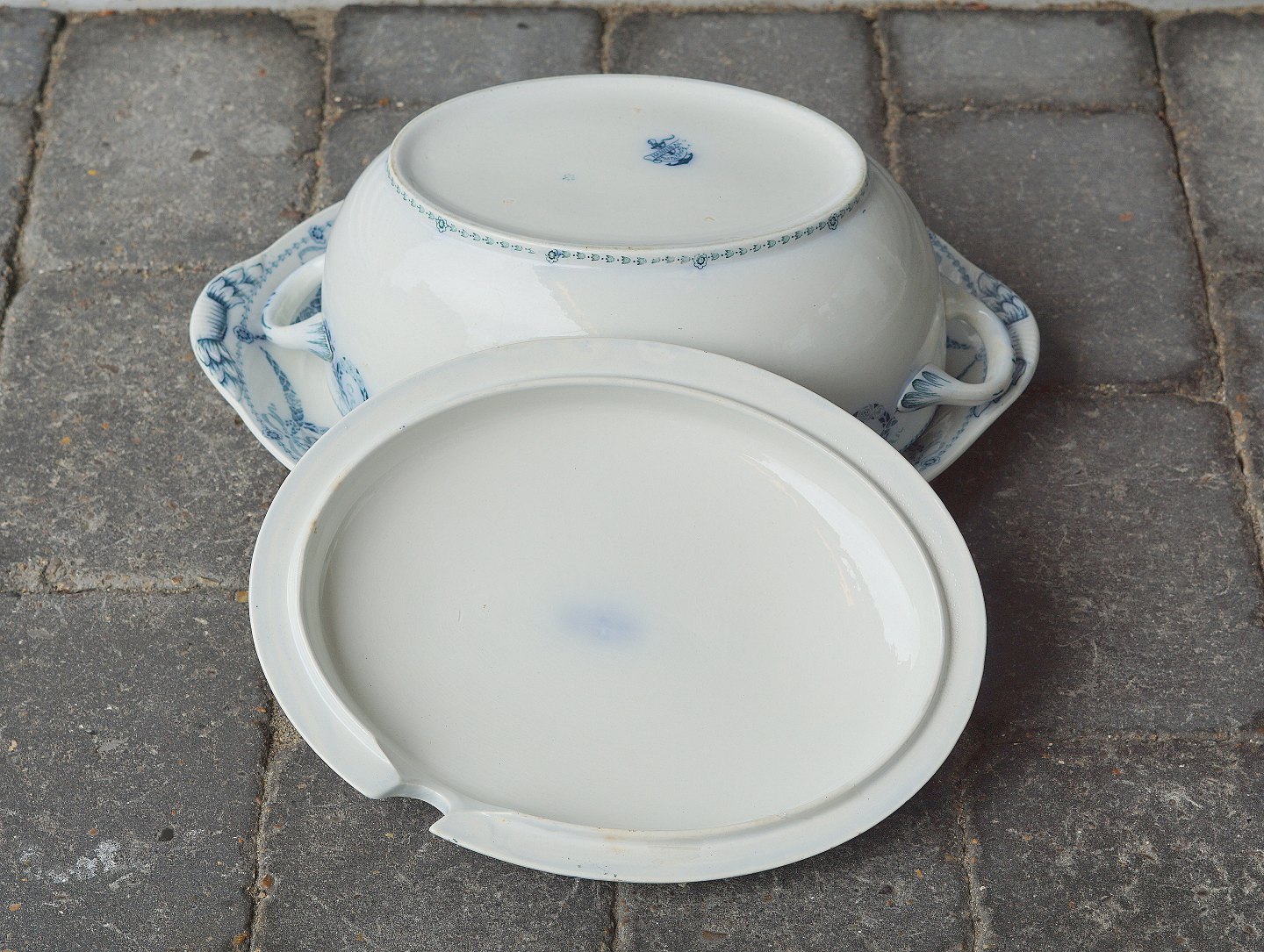 Hannibal, fajance, låg terrine med underfad. Art Deco