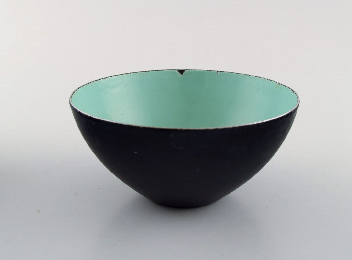 Sæt på seks Krenitskåle af Herbert Krenchel. Sort metal og mintgrøn emalje. 1970'erne.