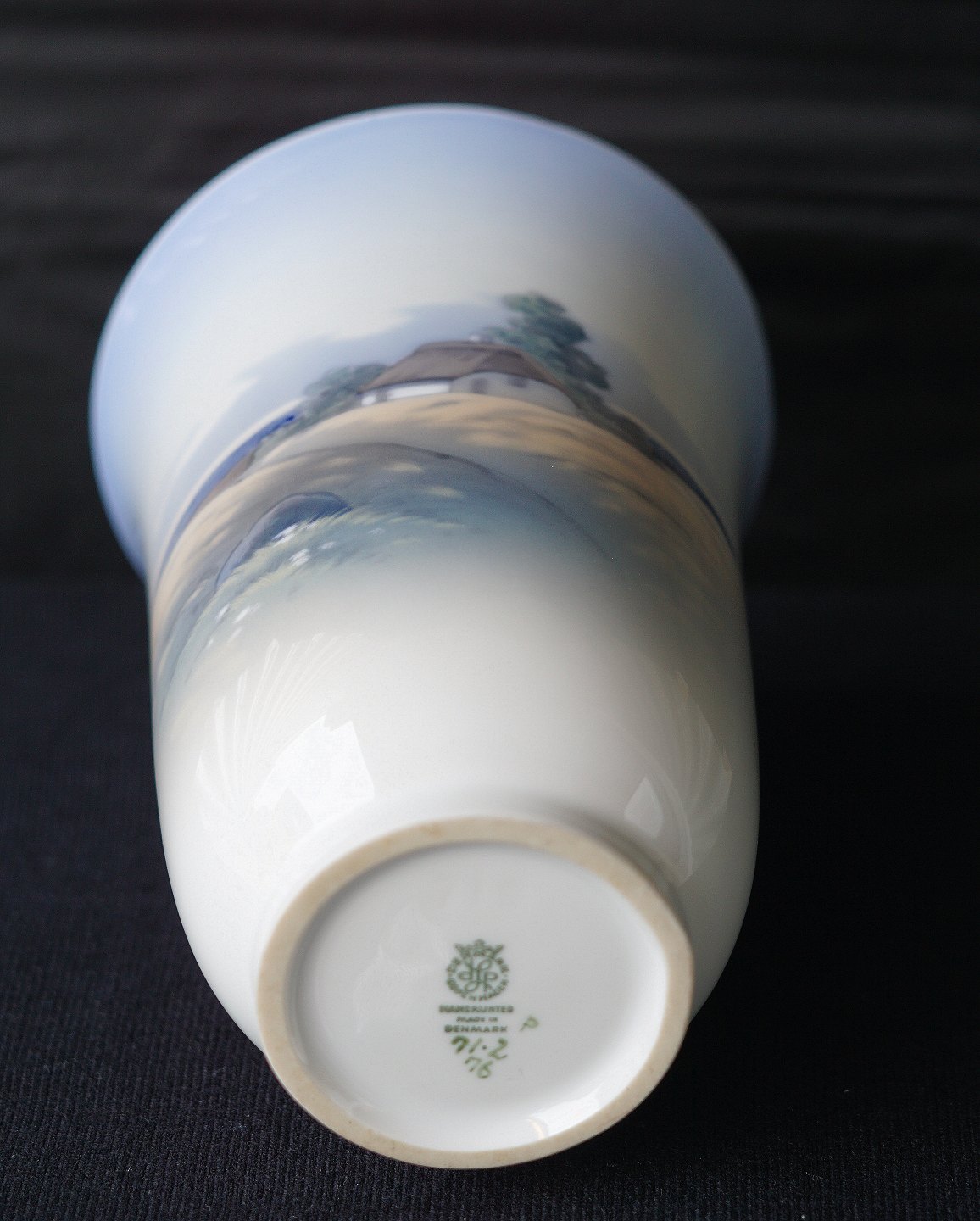 Lyngby Porcelæn, Lyngby. porcelæn, vase, landskab, stråtækt hus, håndmalet