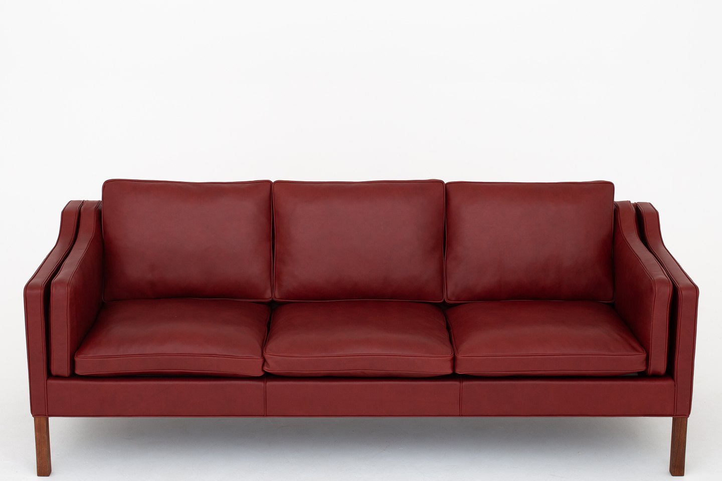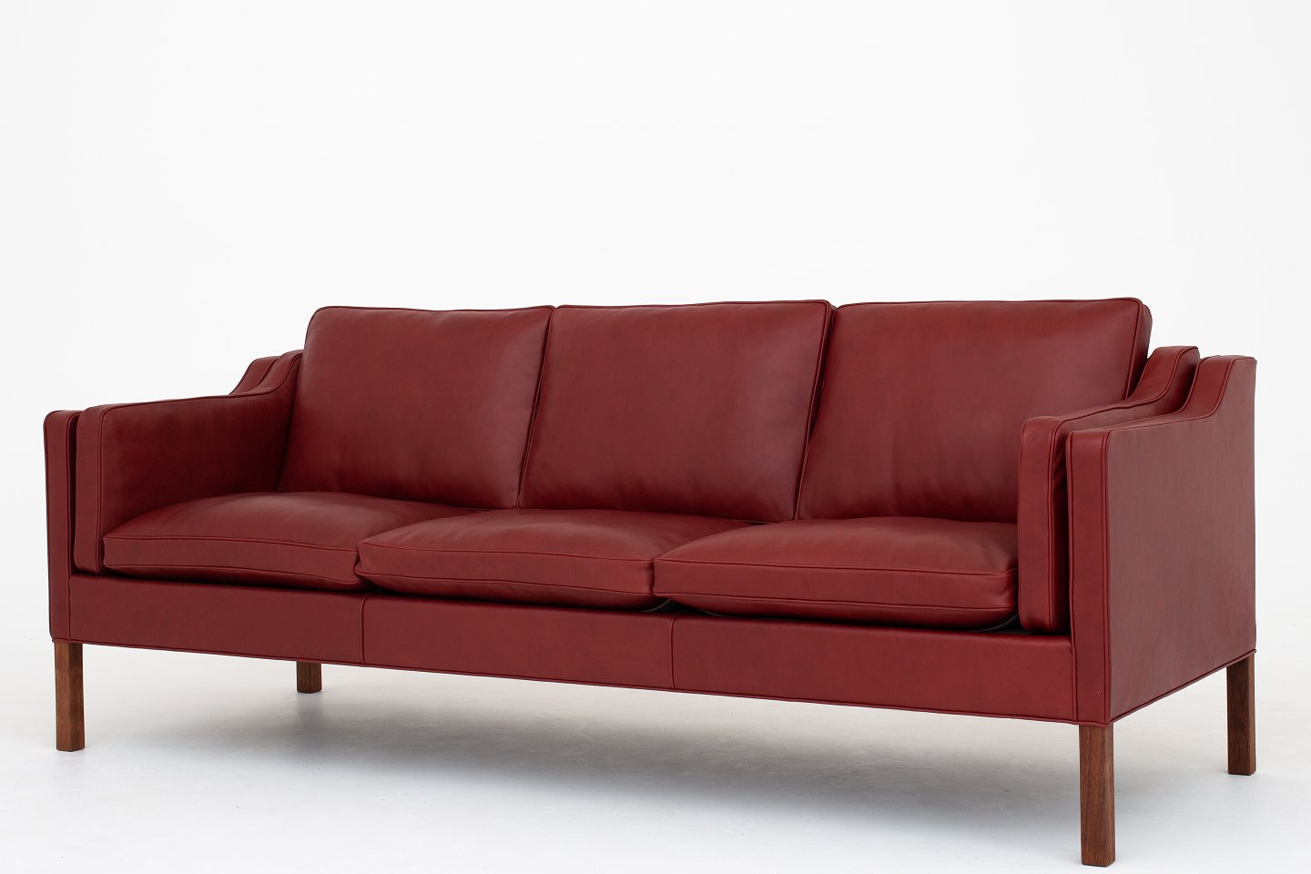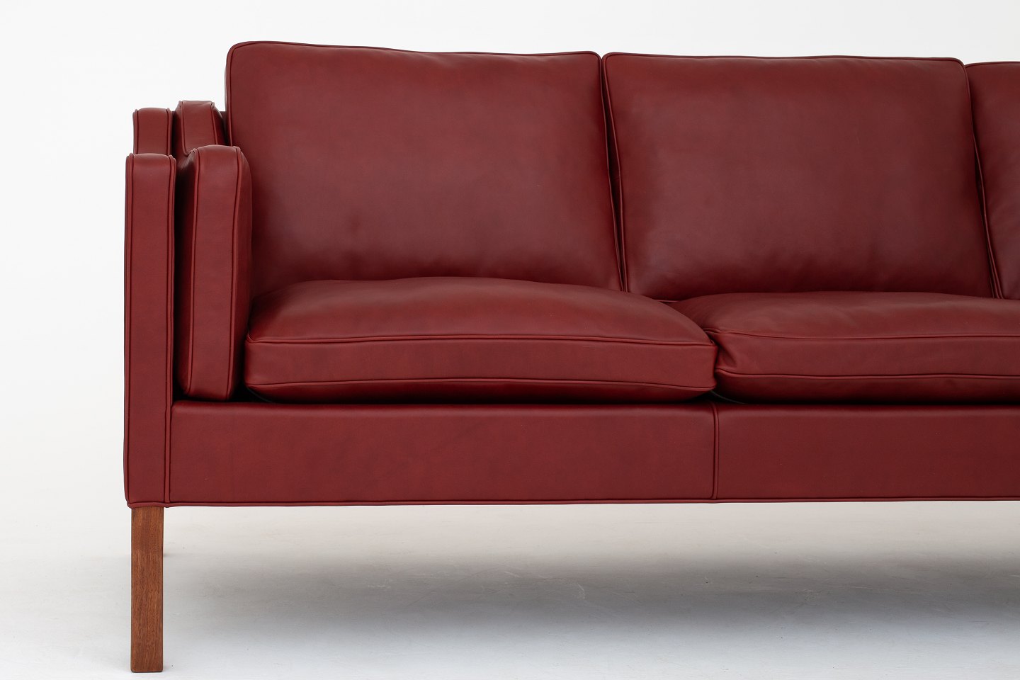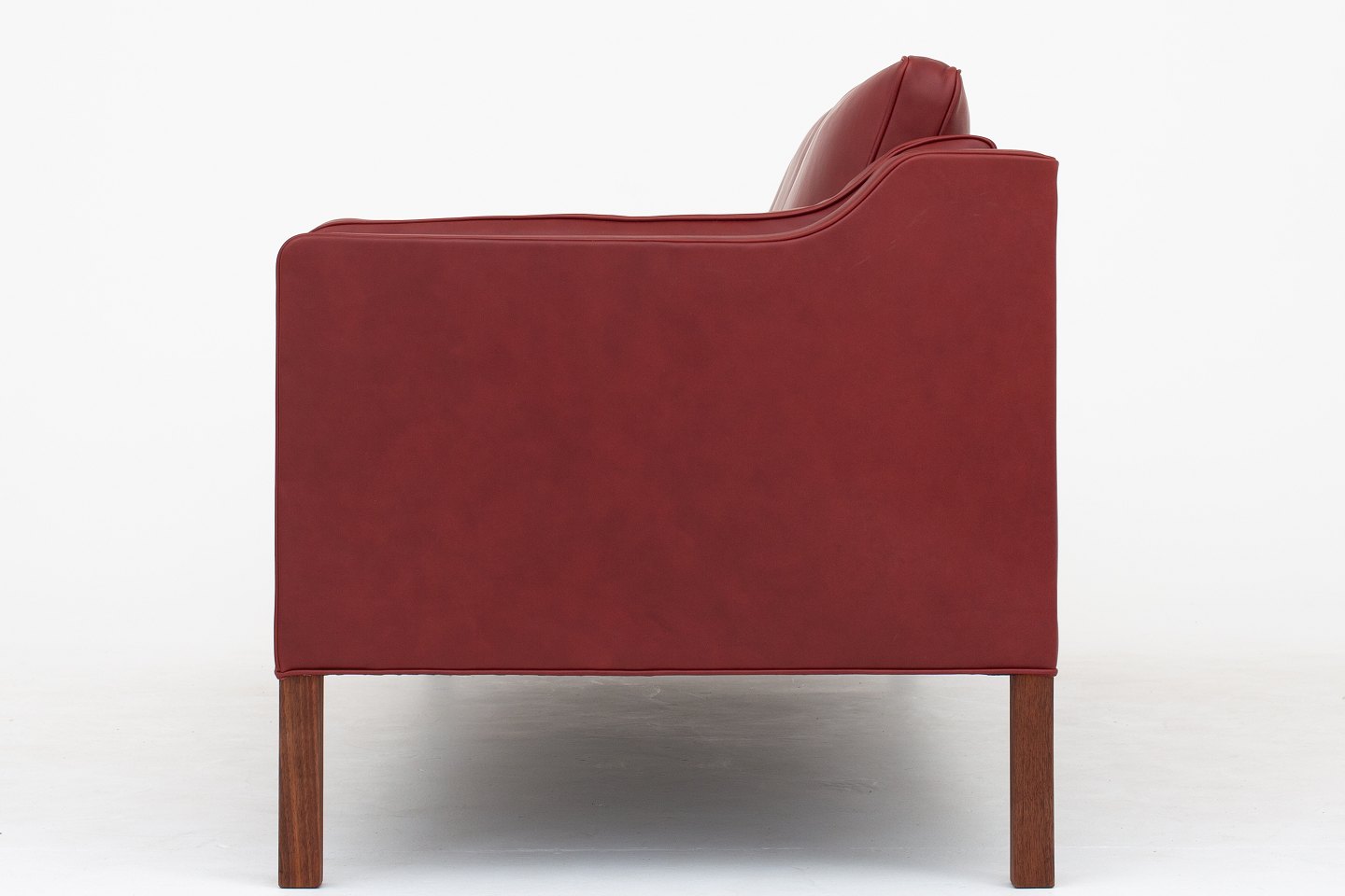 BM 2213 - Nybetrukket 3 pers. sofa i Elegance Indian Red-læder med ben i valnød. KLASSIK tilbyder polstring af sofaen med stof eller læder efter eget valg