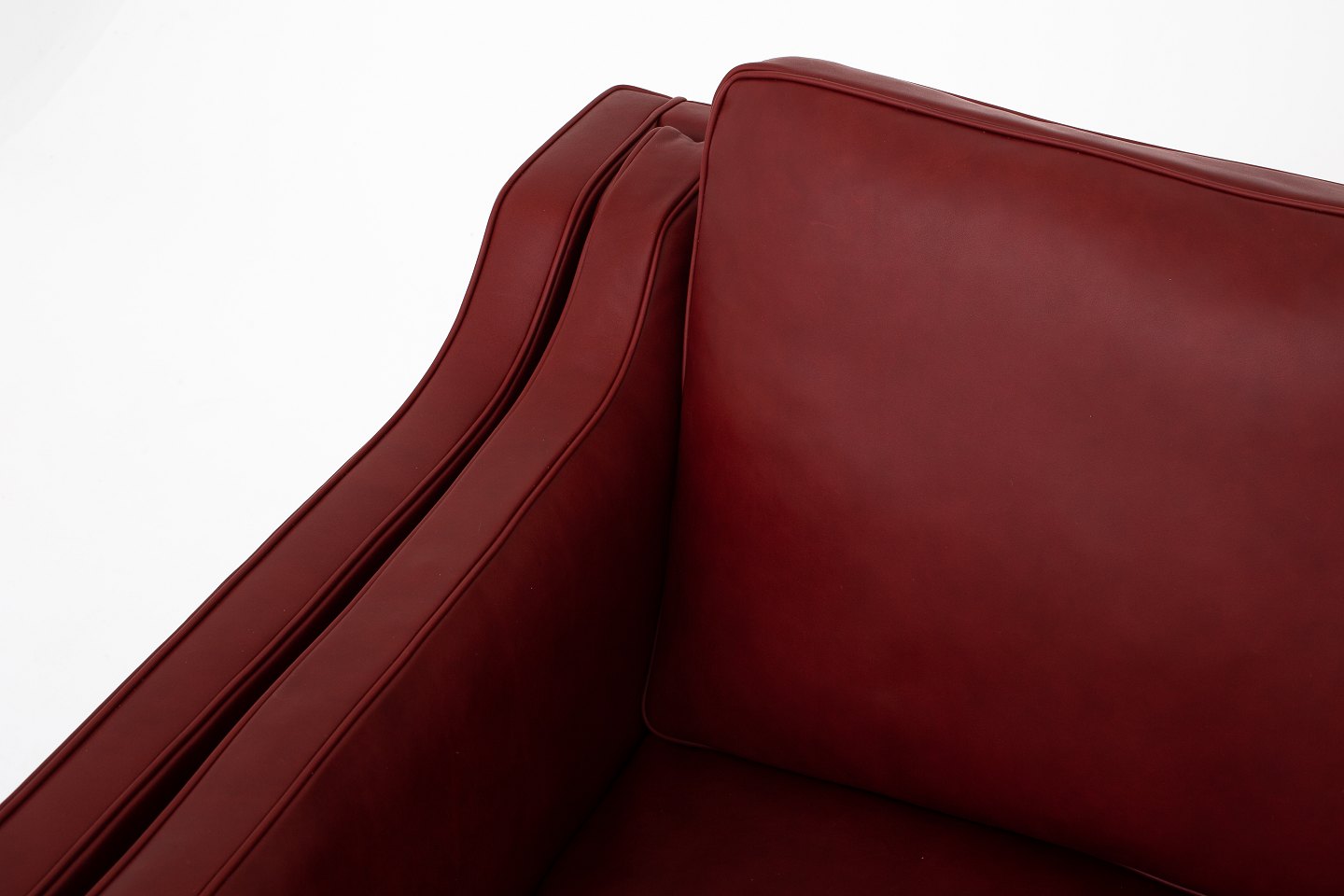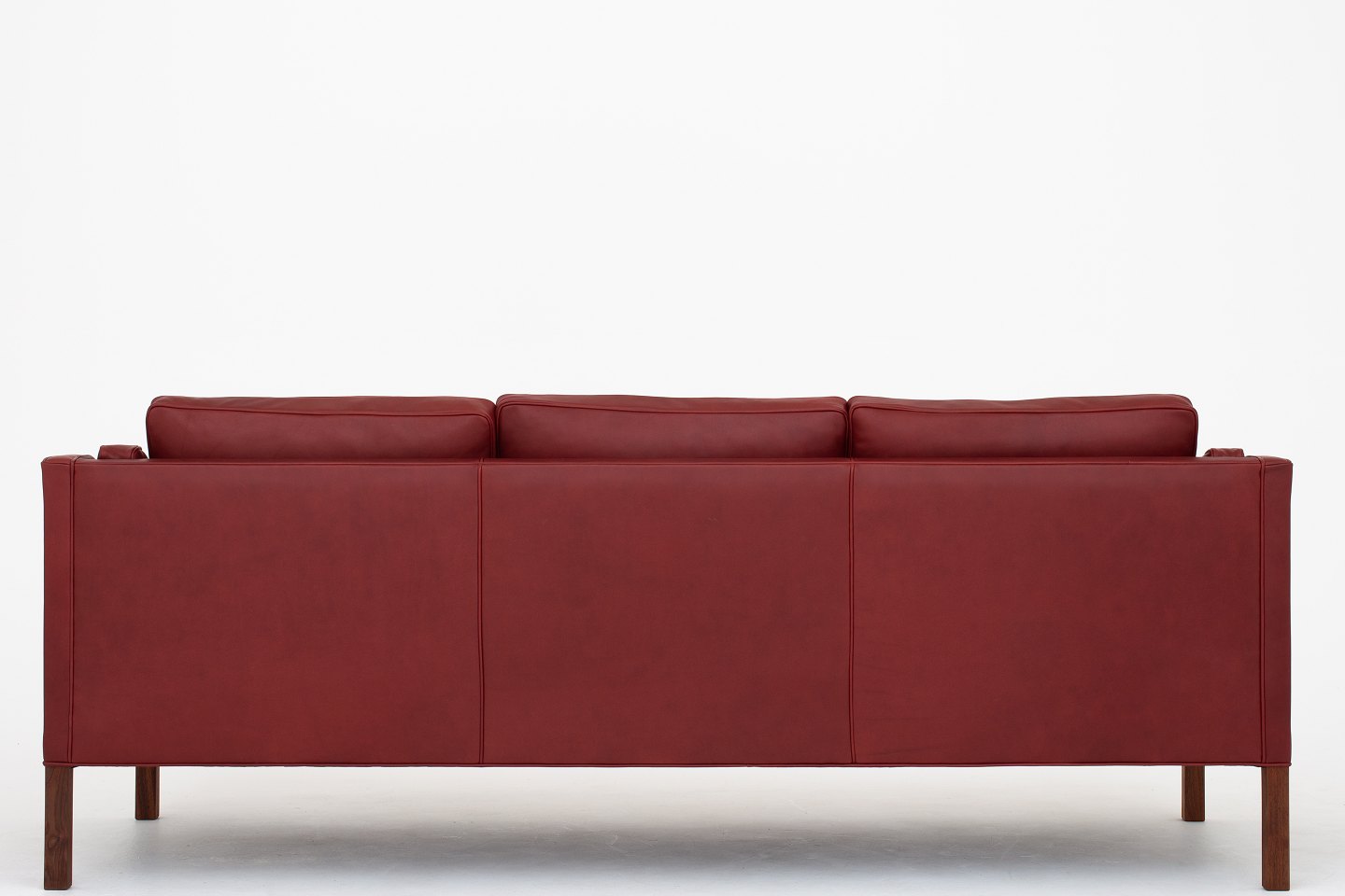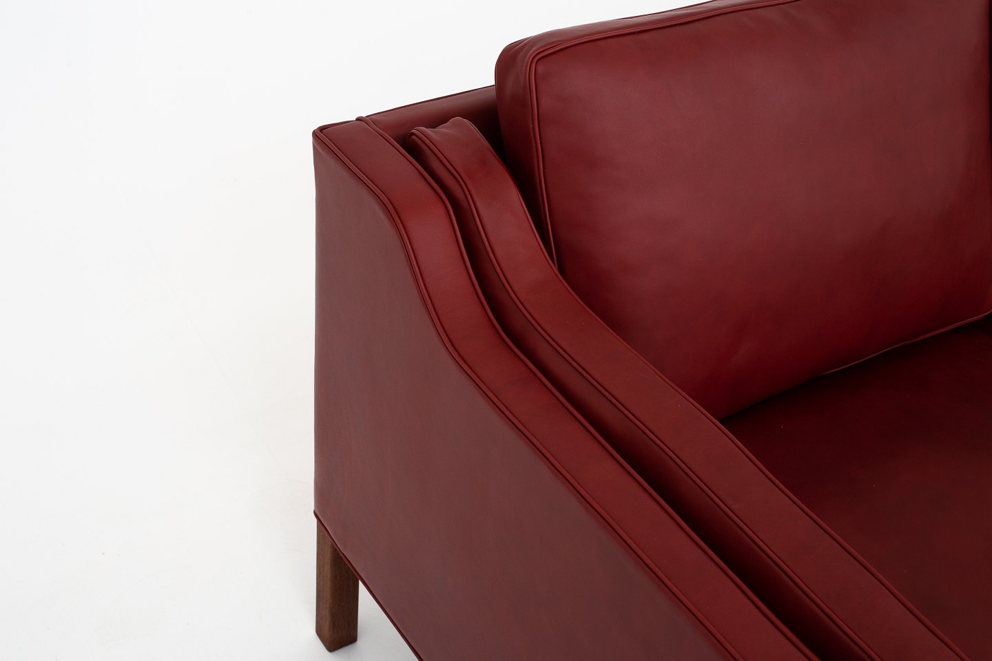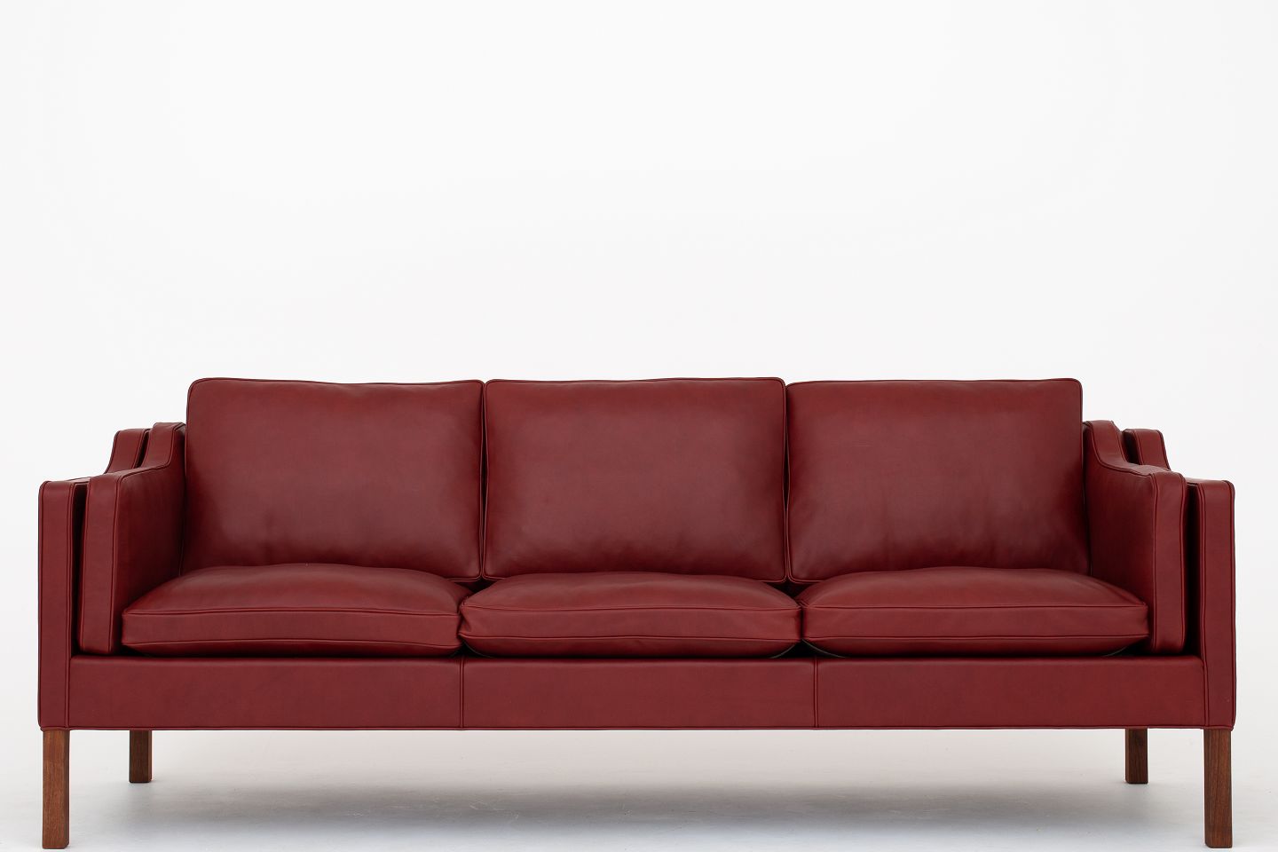 BM 2213 - Nybetrukket 3 pers. sofa i Elegance Indian Red-læder med ben i valnød. KLASSIK tilbyder polstring af sofaen med stof eller læder efter eget valg