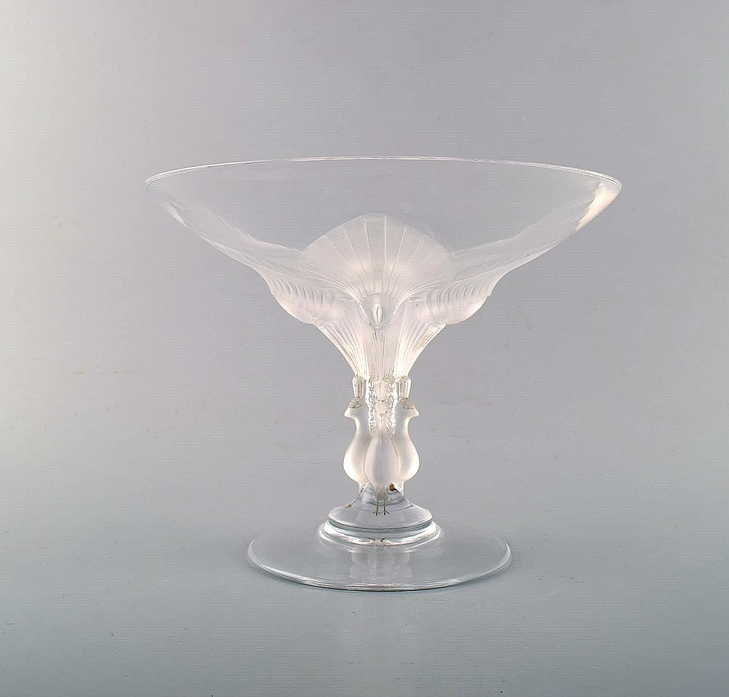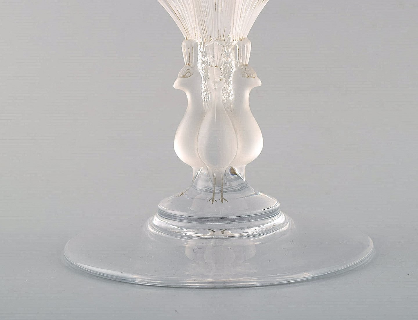 Lalique "Virginia" opsats med påfugle i klart kunstglas. 1950'erne.