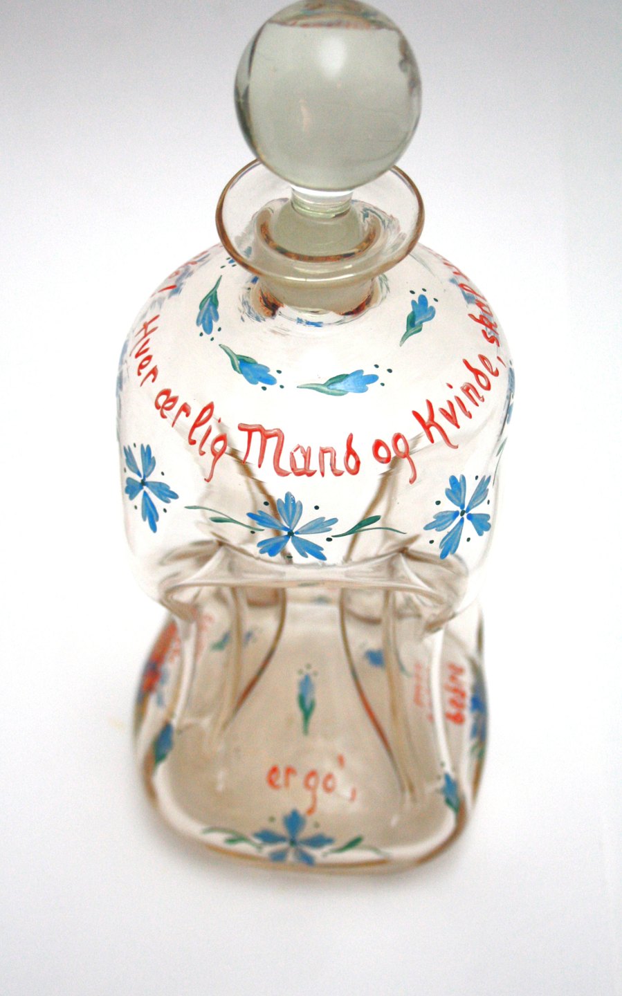 Text available in Danish: Emaljedekorerede klukflasker, Holmegaard