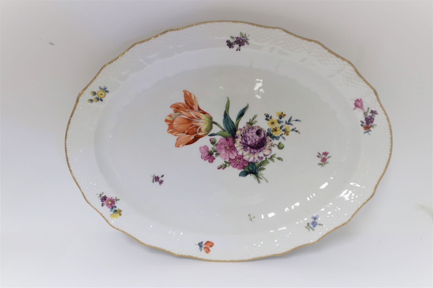 Royal Copenhagen. Saksisk blomst. Ovalt fad. Model 4-1558. Længde 44 cm. Bredde 33 cm. Produceret før 1923. (1 sortering)