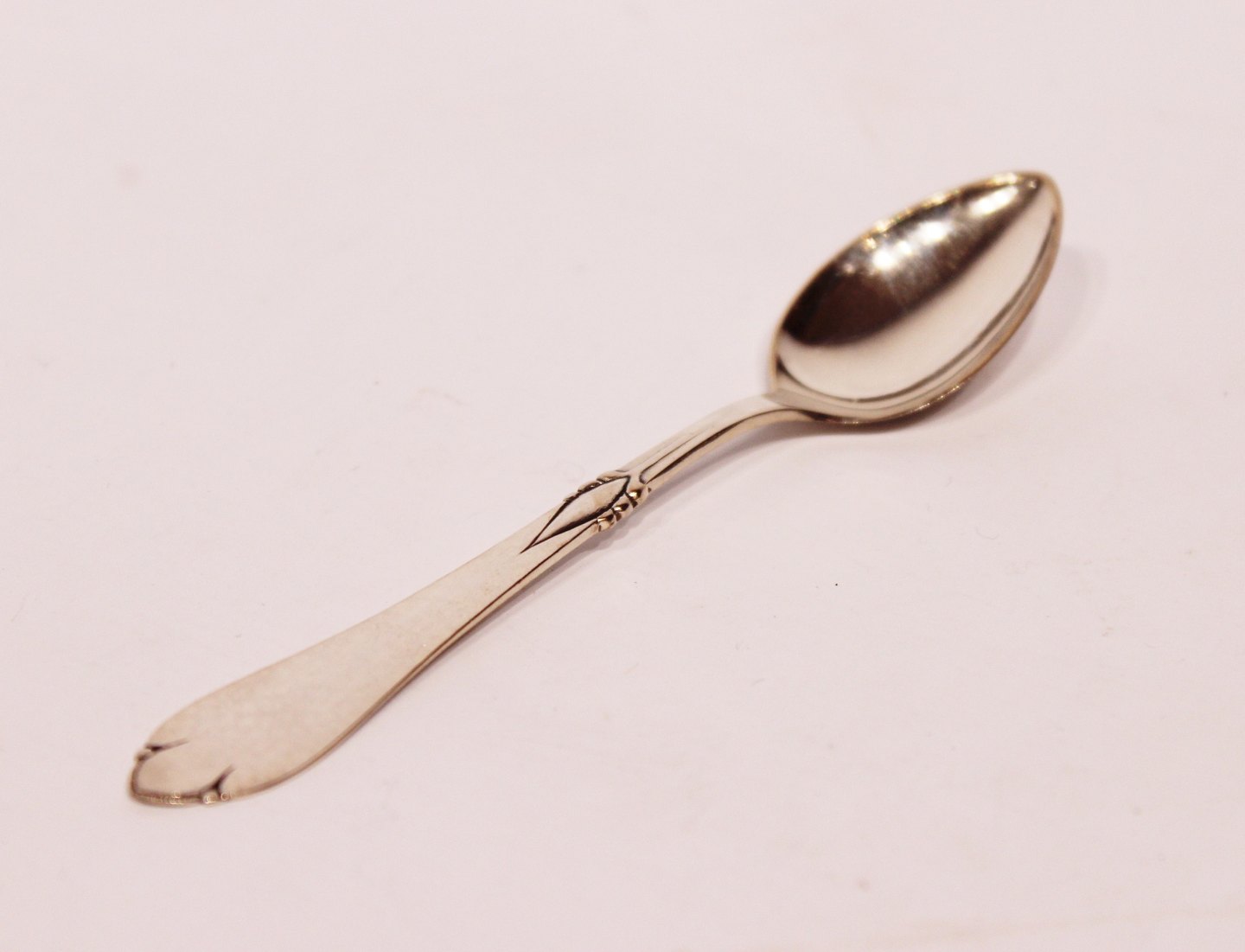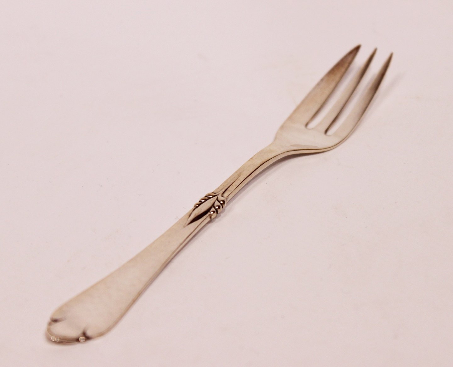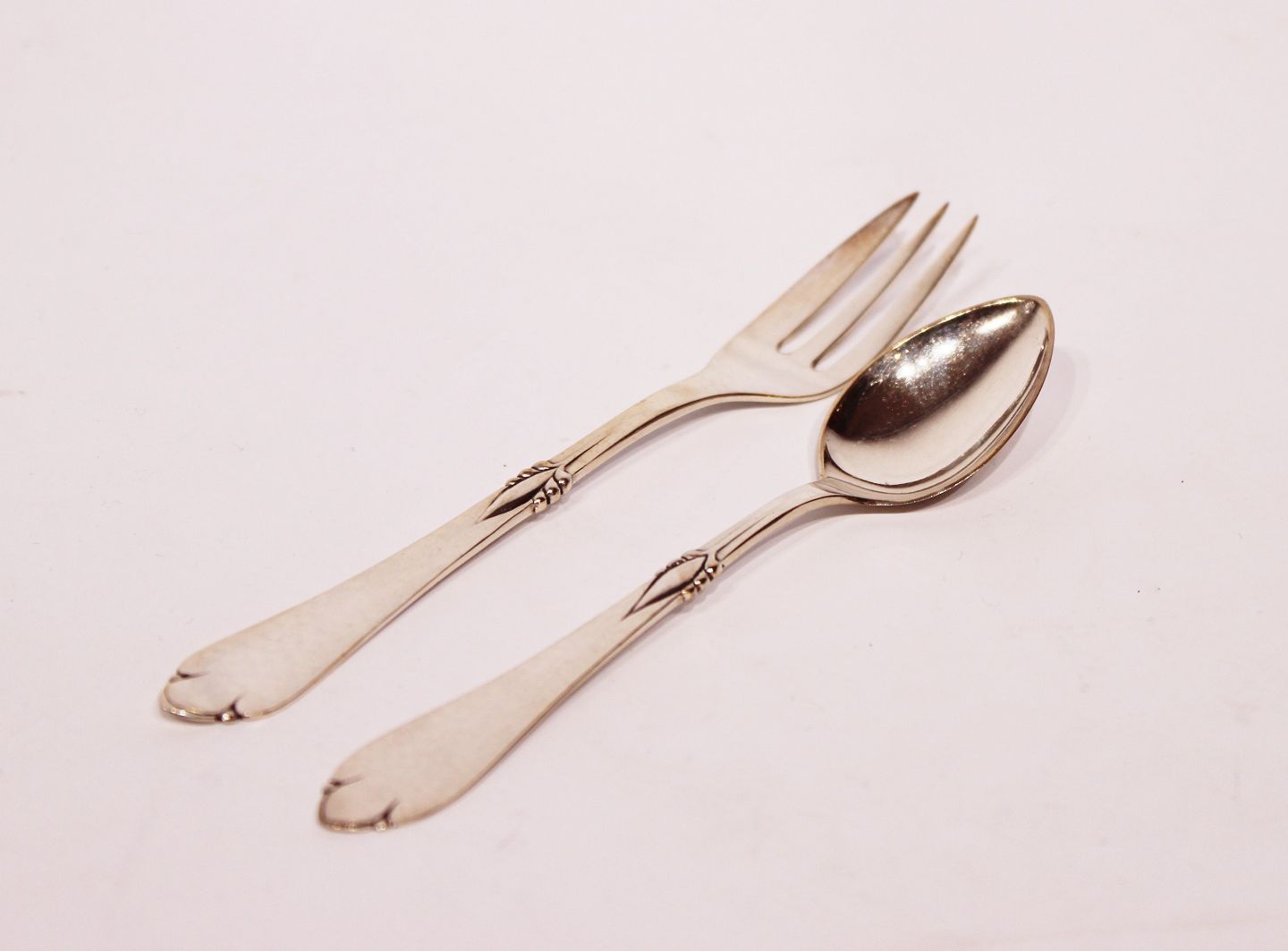 Kagegaffel og teske i Freja , tretårnet sølv. Spørg for antal på lager.