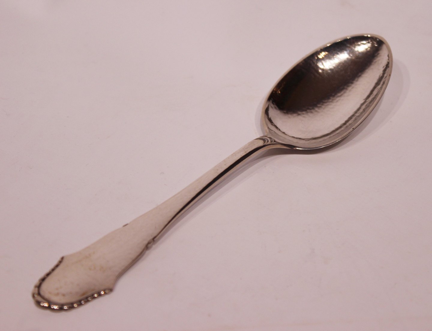 Middagsske (450 kr.) og teske (150 kr.) i Christiansborg, tretårnet sølv. Spørg for antal på lager.
