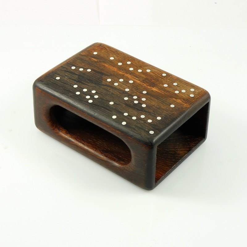 Frantz Hingelberg. Tændstik boks i moseeg med sterling sølv intarsia. 1960erne