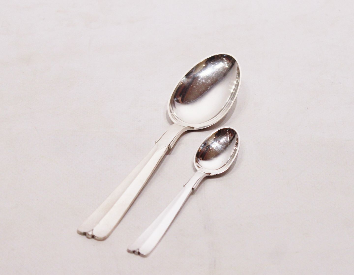 Dessertske (600 kr.) og teske (300 kr.) i Arvesølv nr. 7 af Hans Hansen. Spørg for antal på lager.