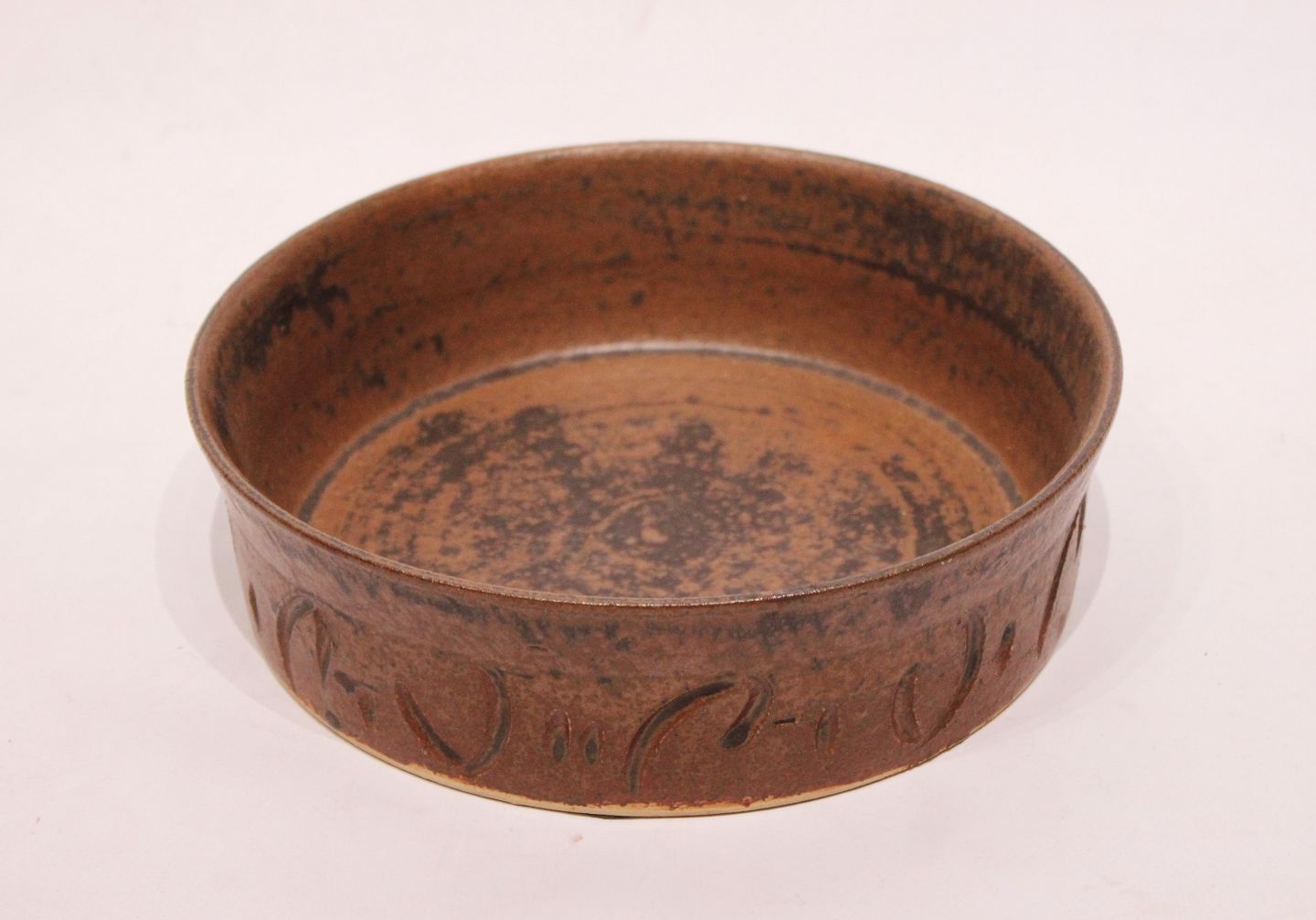Dark brown ceramic bowl, numbered 1702, by Axella, from the 1960s.