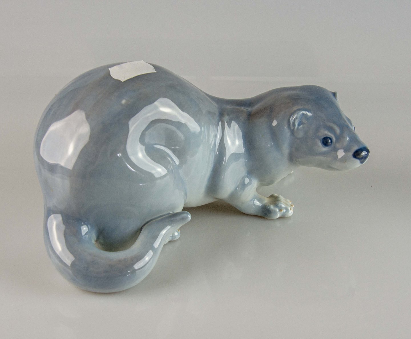 Figur i porcelæn med motiv af grå mink, arkivfoto
