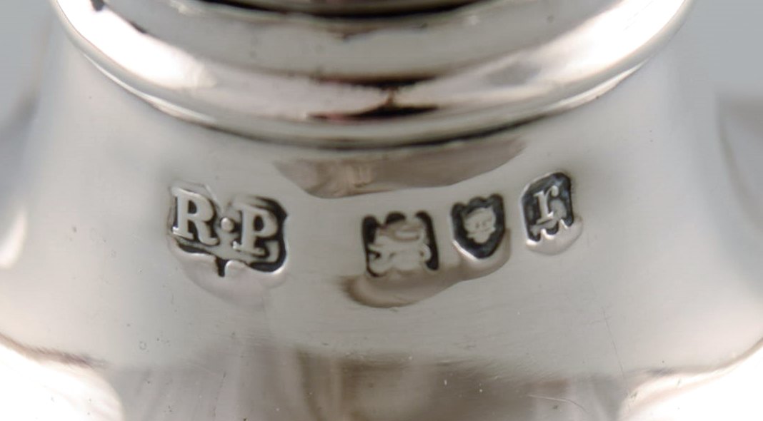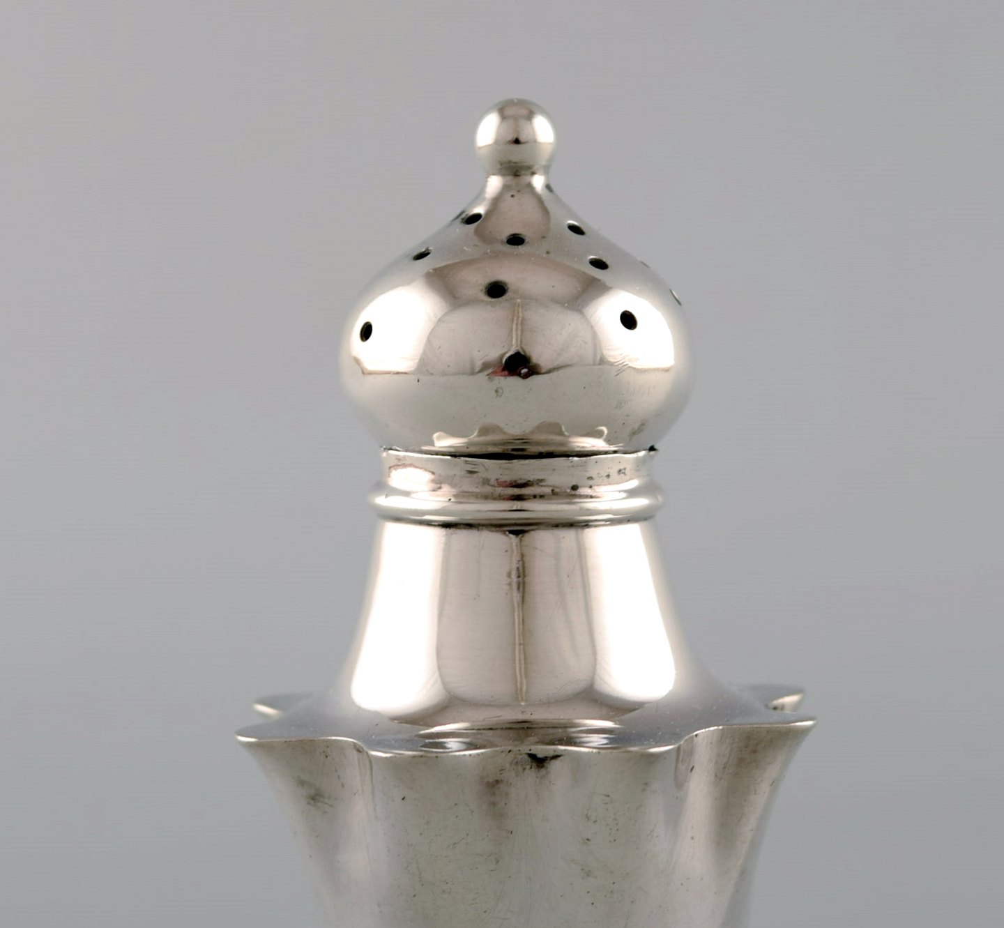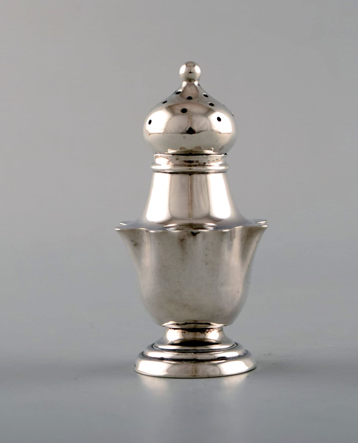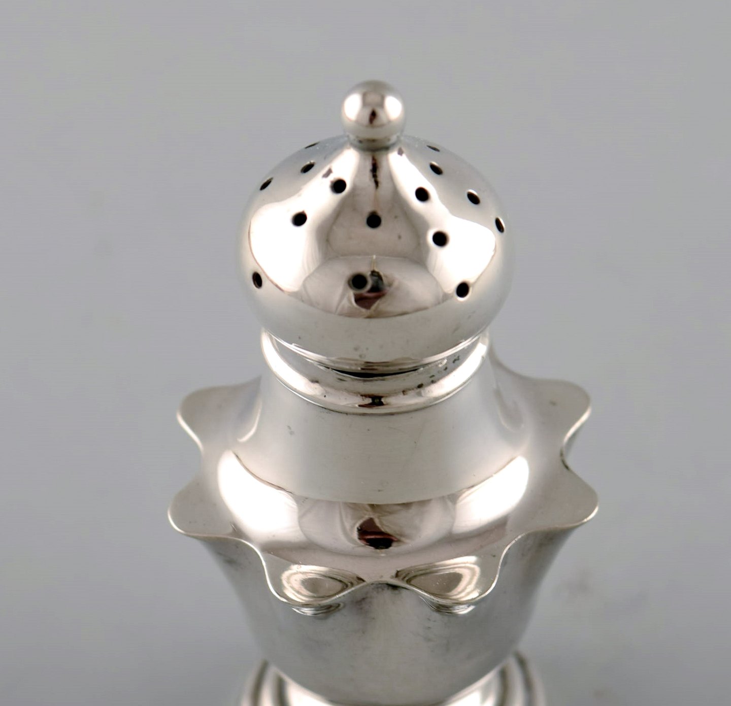 Engelsk peberbøsse i sølv. Sent 1800-tallet. Fra stor privatsamling.