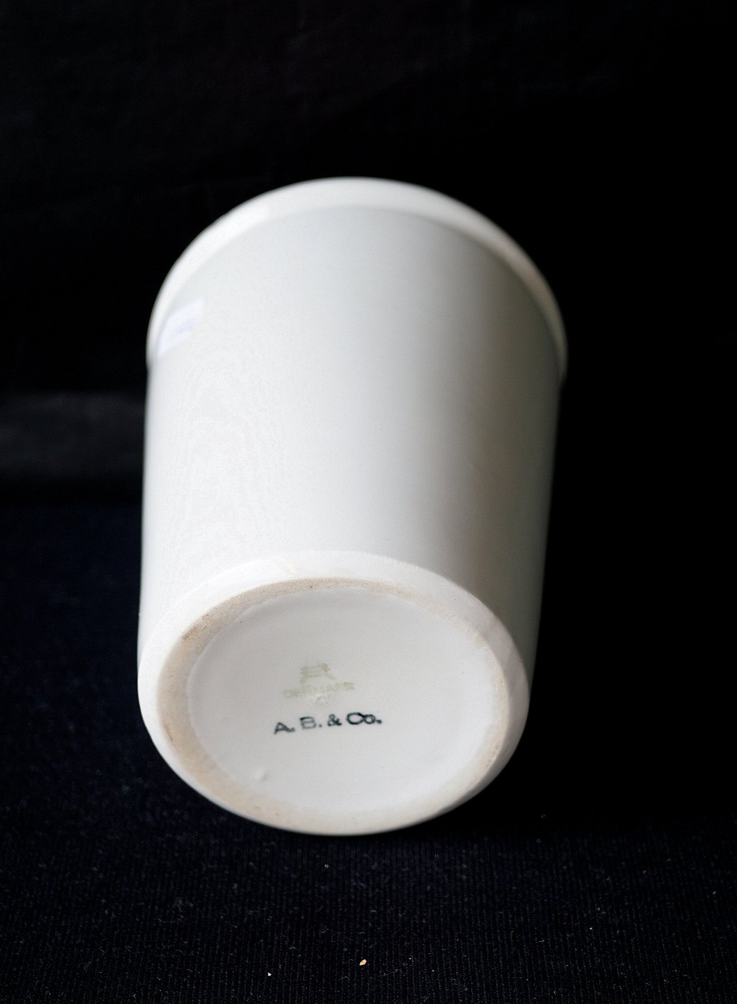 Aluminia, hvid fajance krukke, stemplet i bunden A.B. & Co. Apotekerkrukke, findes i mange størrelsen
