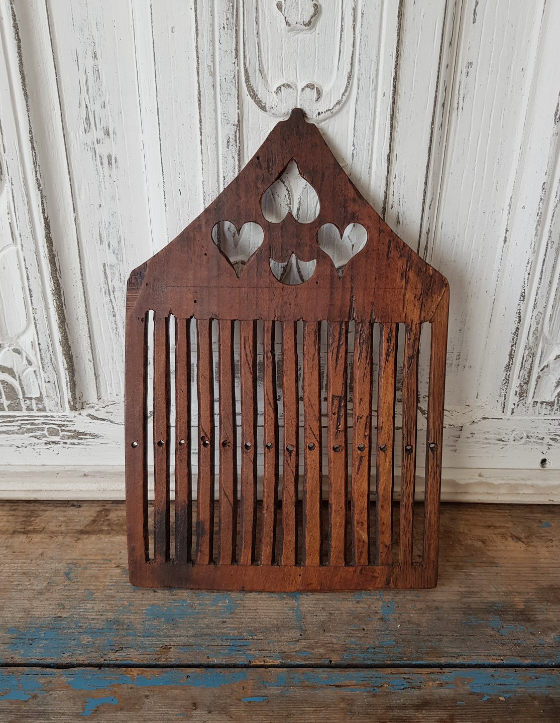 1800tals vævespjæld med dekoration i form af hjerter.