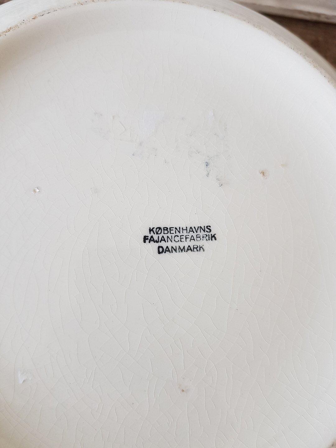 Stort cremefarvet fajance servantefad fra Københavns Fajancefabrik