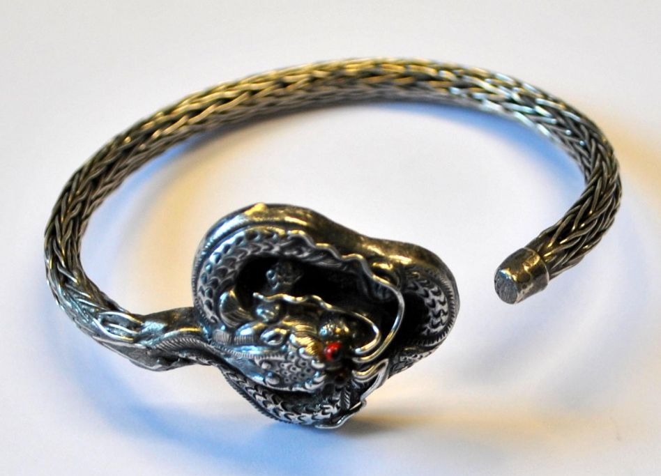 Twisted silver bracelet, decorated with dragon, 20th century Presumably - Chinese.