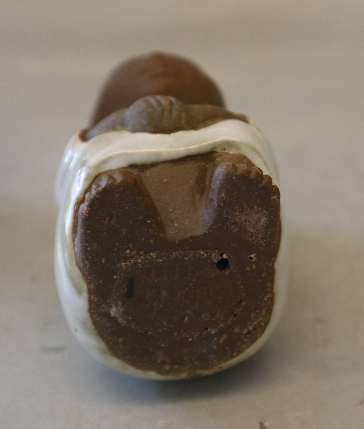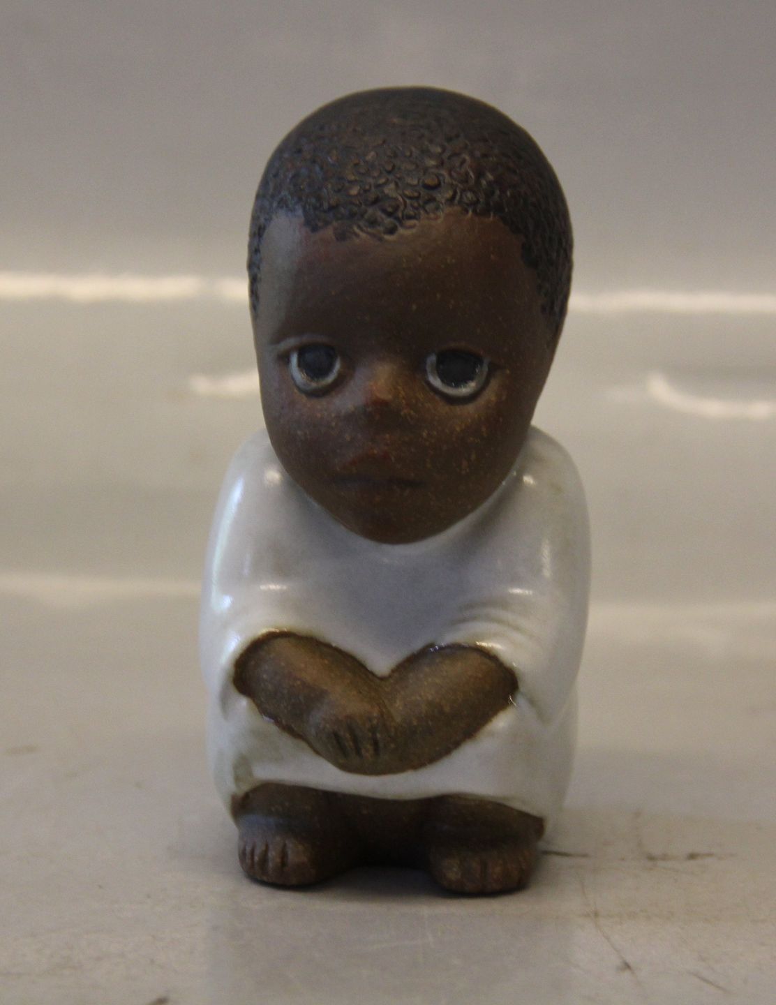 Syd. Afrikansk dreng siddende på hug 11 cm.1974 Gustavberg Sweden Keramik og porcelæn