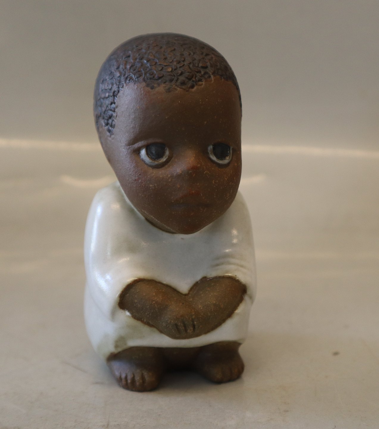 Syd. Afrikansk dreng siddende på hug 11 cm.1974 Gustavsberg Sverige