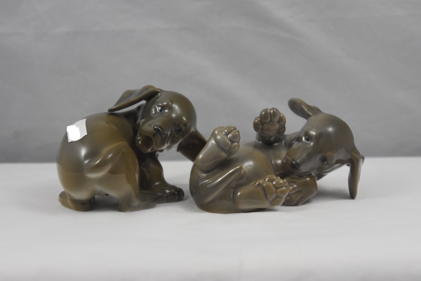 Royal Copenhagen figur af Korthåret, siddende korthåret gravhund nr. 1407. 1 sortering.