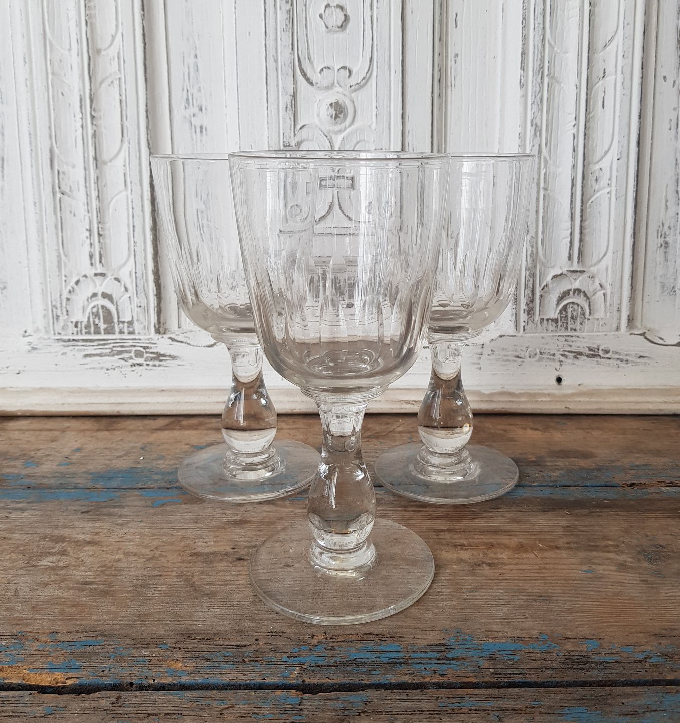 Store porter pokaler - kalkformet kumme med olivenslibninger på balusterstilk.