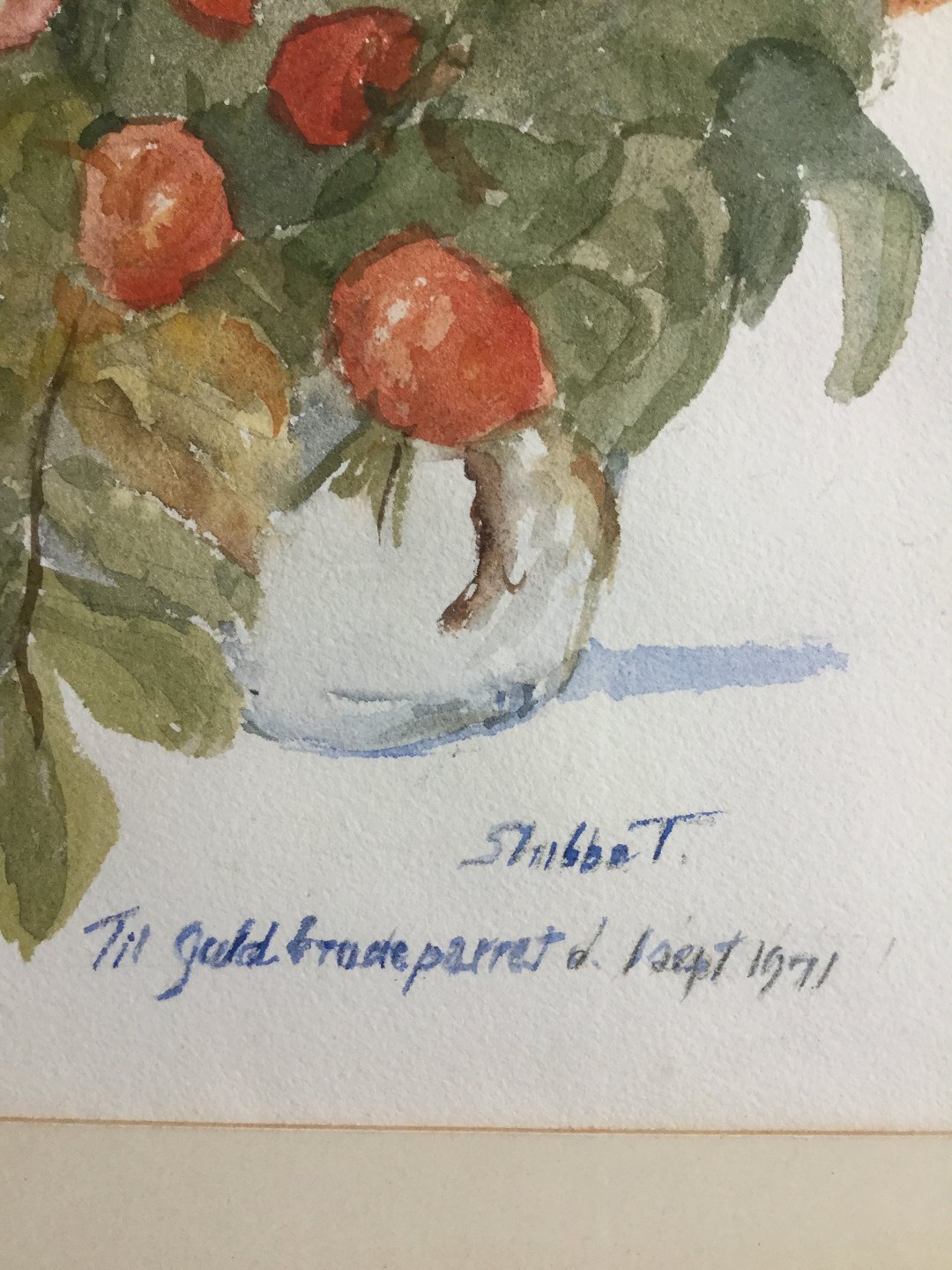 Akvarel af C.V. Stubbe Teglbjærg - Blomster i vase 1971.