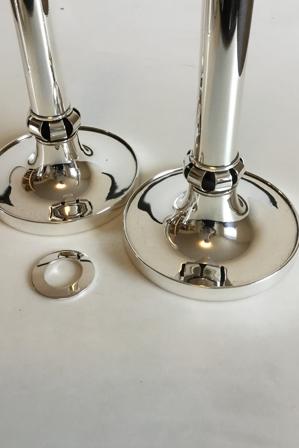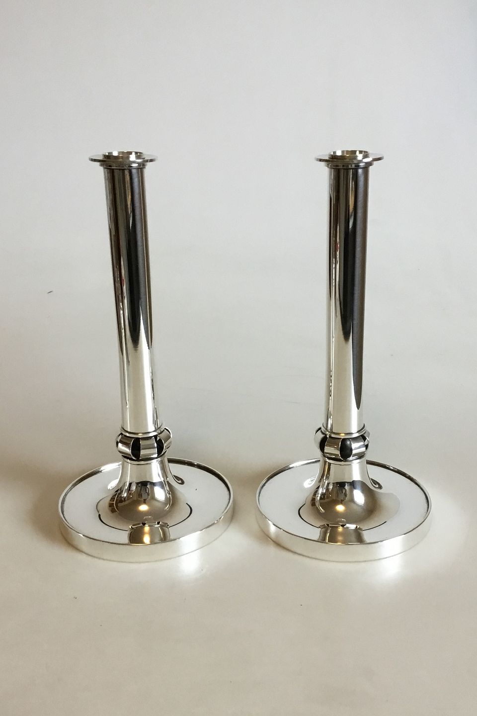 Evald Nielsen Sterling Silver A pair of candlelight Holders. Measures 24.5 cm / 9 41/64 in. high, base is 12 cm / 4 23/32 in. dia.