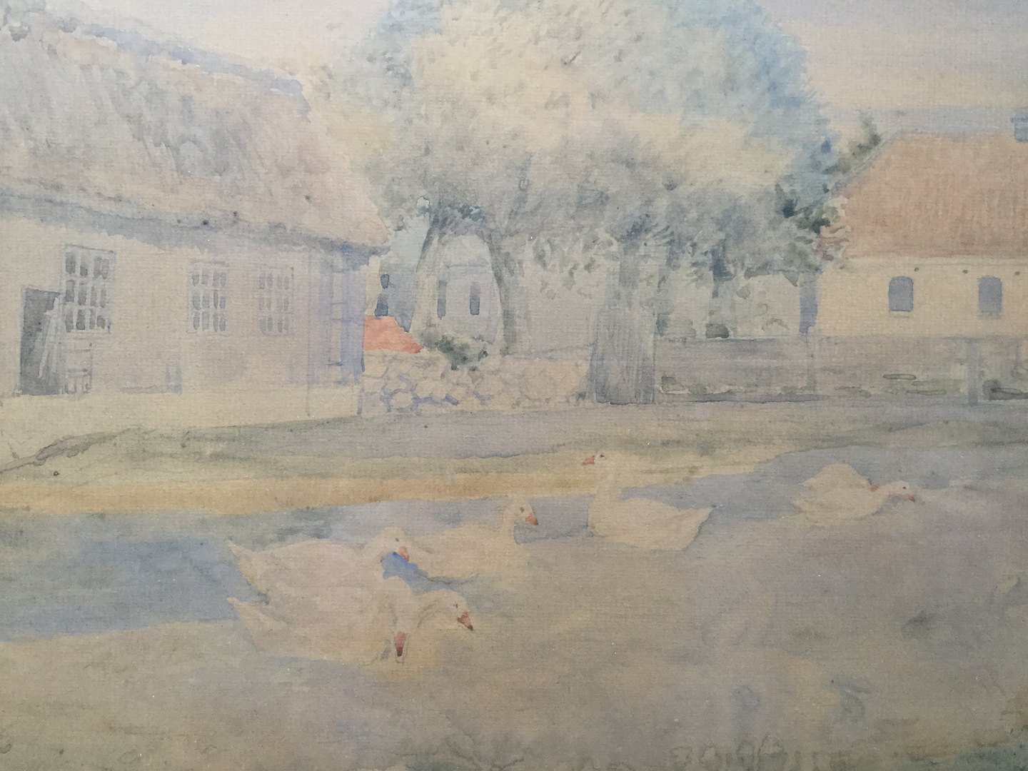 Gårdeksteriør med ænder på gårdsplads 1926.