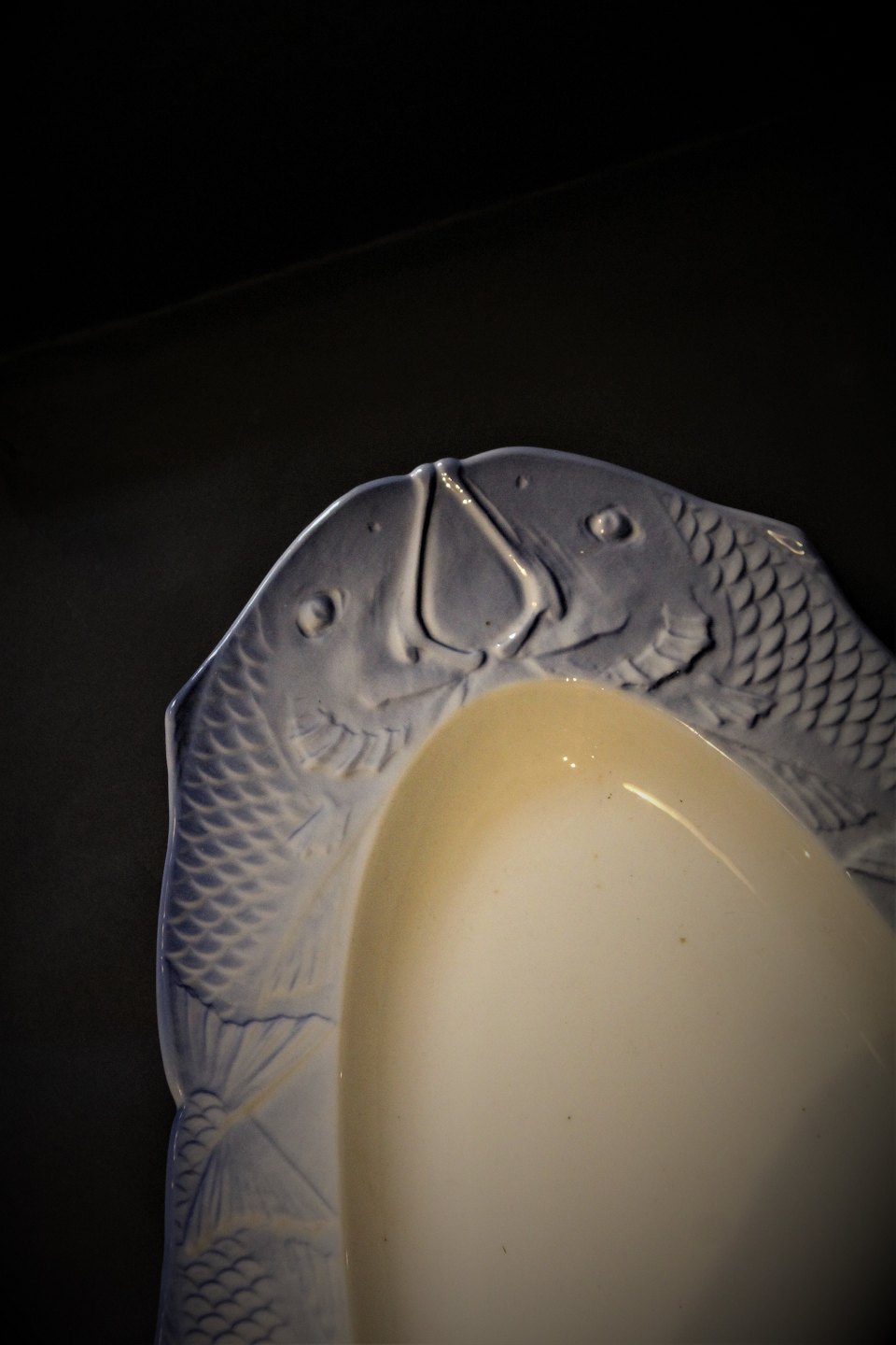 Royal Copenhagen oval fishing dish. 61x26cm. 2.sort. from before 1923. Here small glaze dots with otherwise in whole and fine condition.