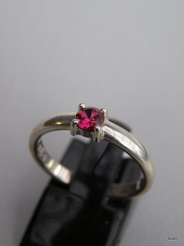 Sølvring 925 S. m. Pink Sten Ringstr. 55,5