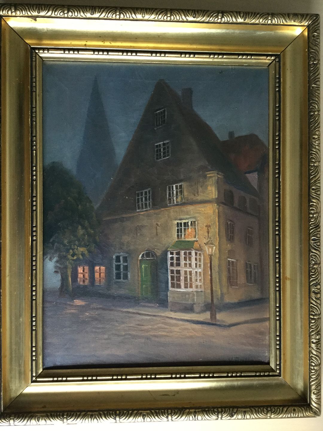 Maleri af V. Balle - Aftenparti fra Torvet i Tønder.