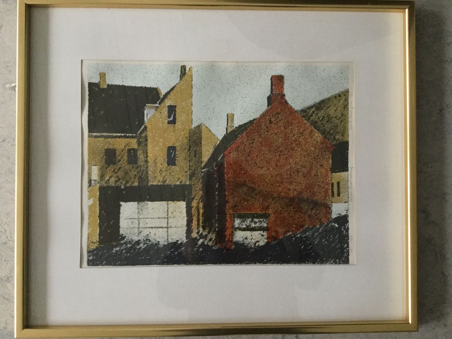 Litografi af Kurt Nedergaard - Huse- renovering 1983.