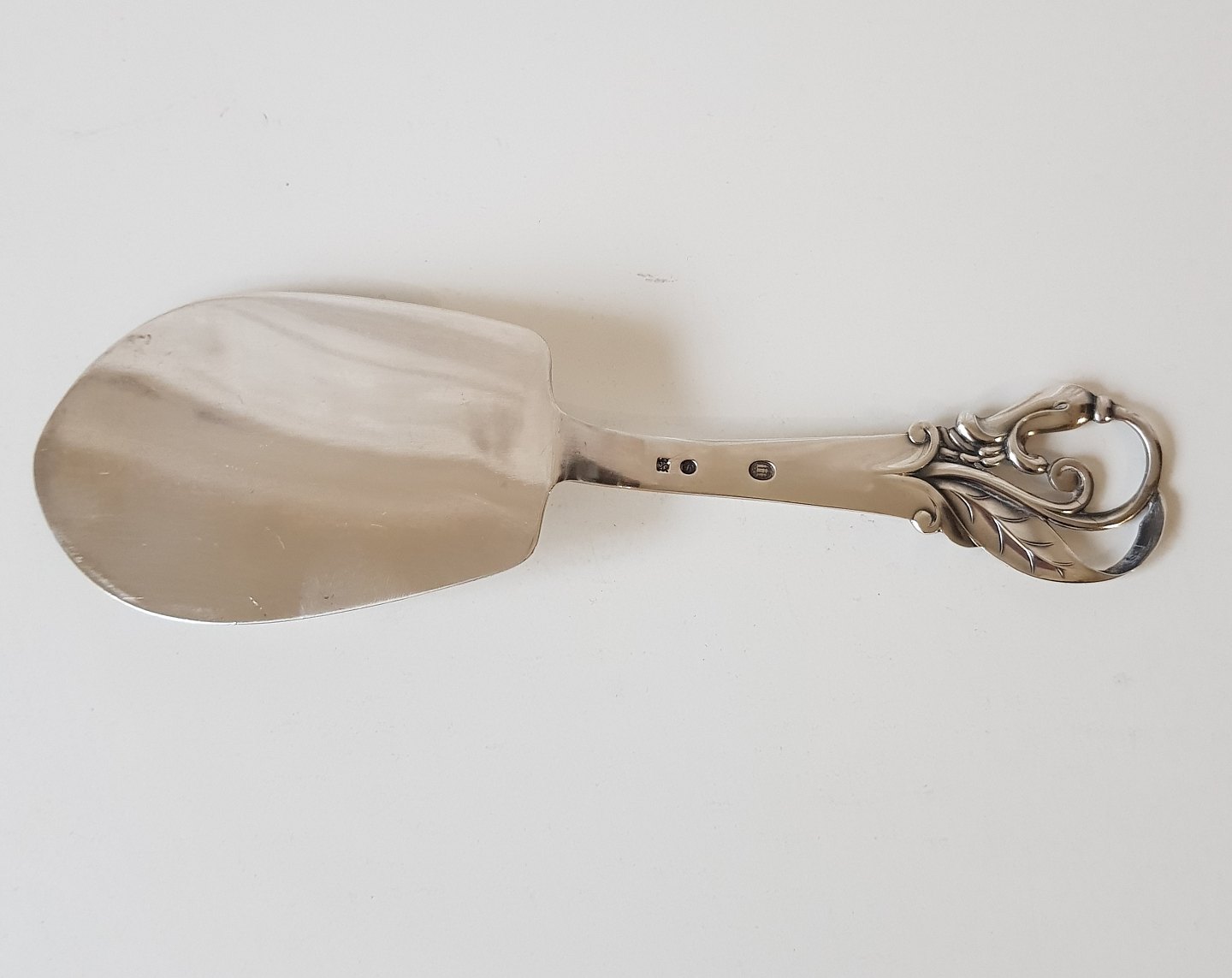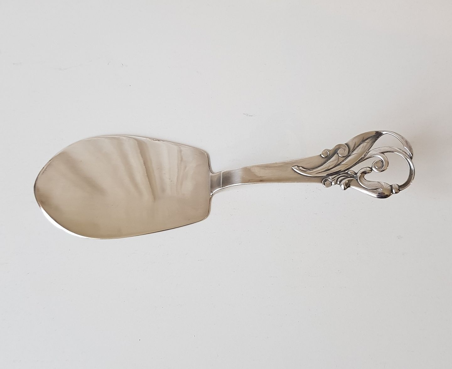 Smuk serveringsspade i sølv fra Horsens sølvvarefabrik 1945.