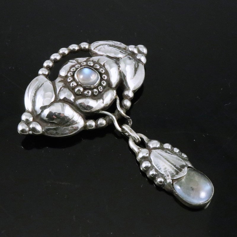 Evald Nielsen. Skønvirke Broche i Sølv med månesten.