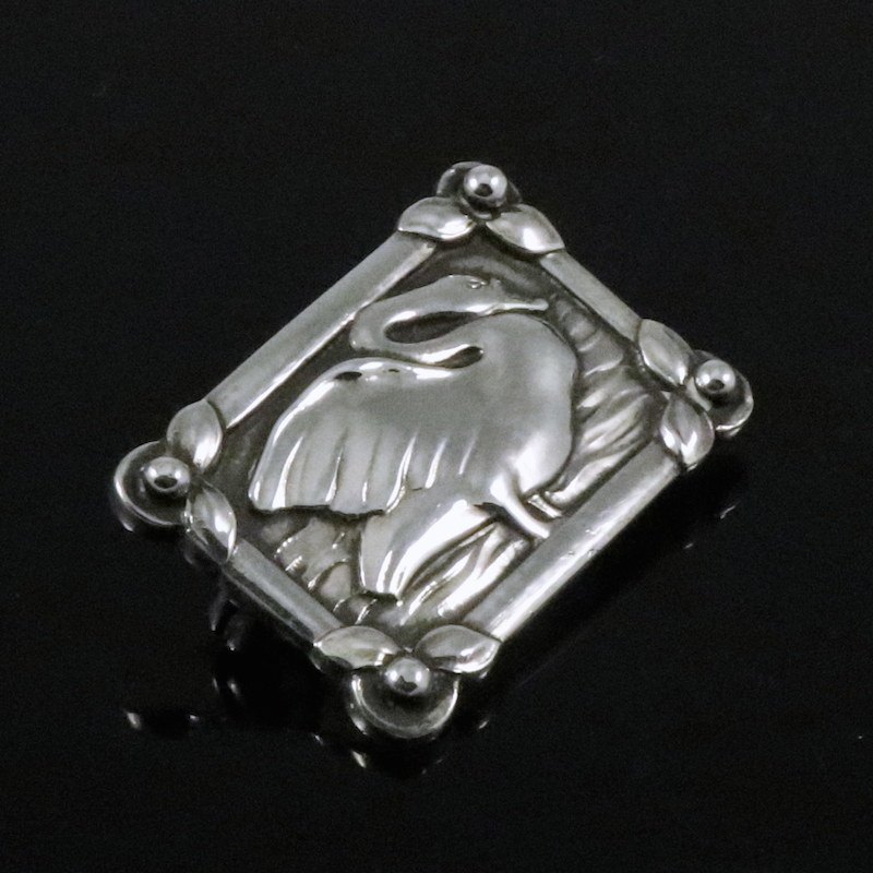 Georg Jensen. Sterling Silver 'Swan' Brooch #213. 1933-44 Hallmarks.