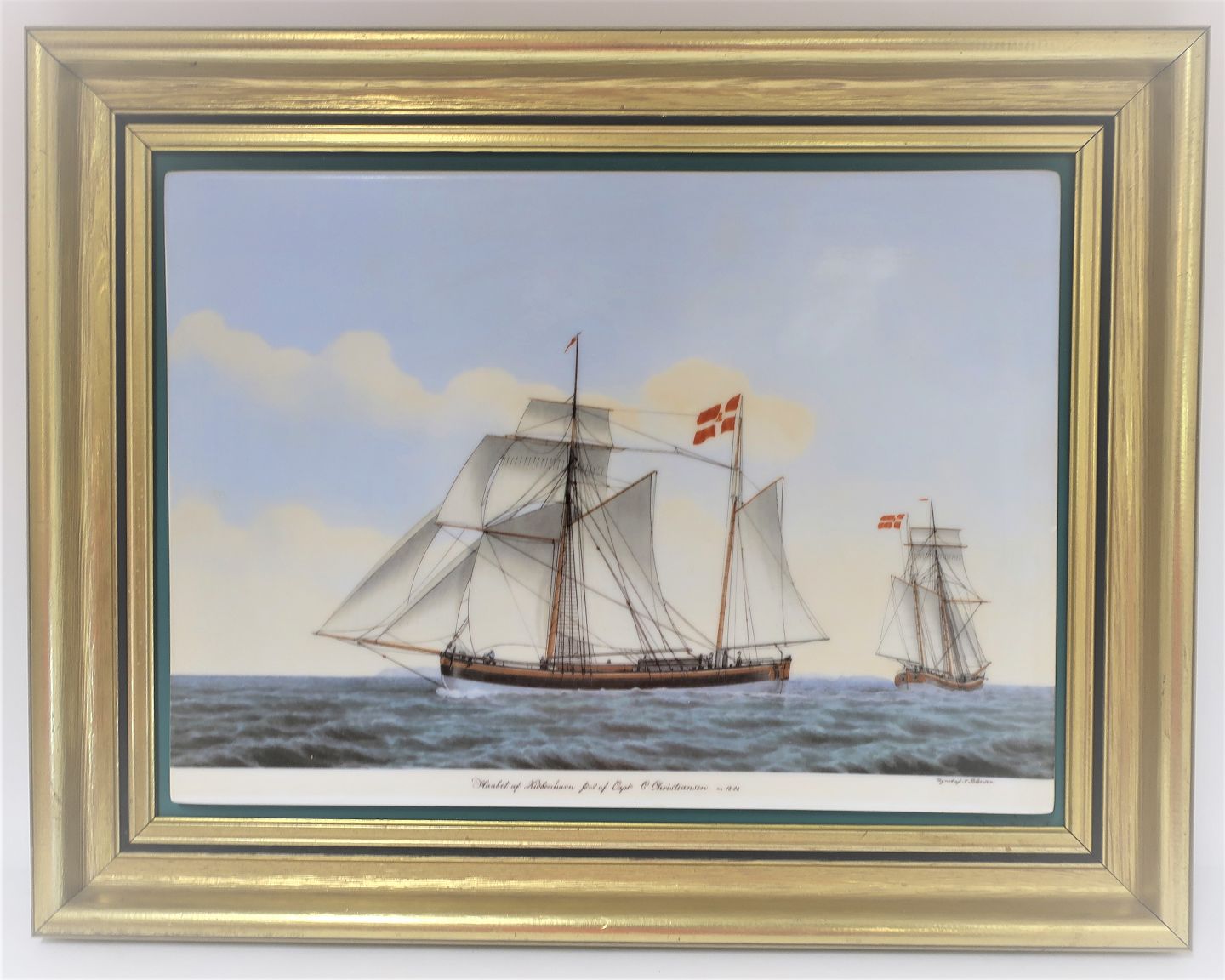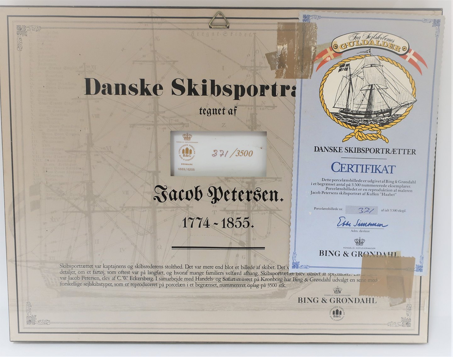 Bing & Grondahl. Porcelain. Danish ship portraits. Image of "Haabet". Dimensions: Width 38 * 30 cm. 3500 have been produced and this one is no. 371