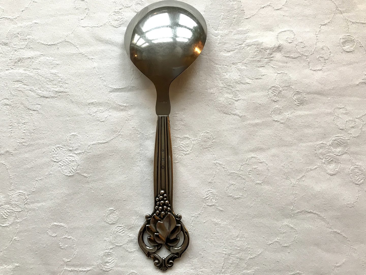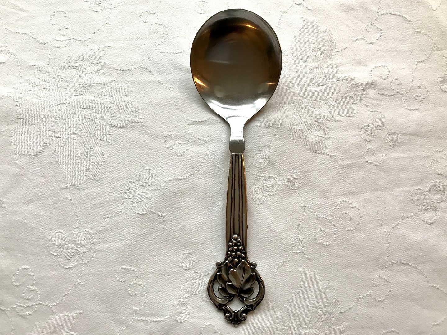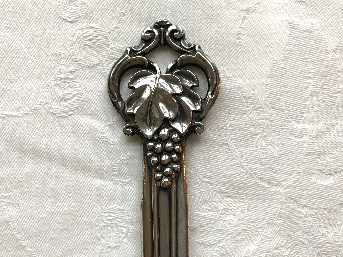 Serveringsske. Vinranke med drue klaser, Tretårnet sølv (830S), Sølv og rustfrit stål, Cohr Sølvvarefabrik, 23cm lang, fremstillet i 1947 *Pæn stand*