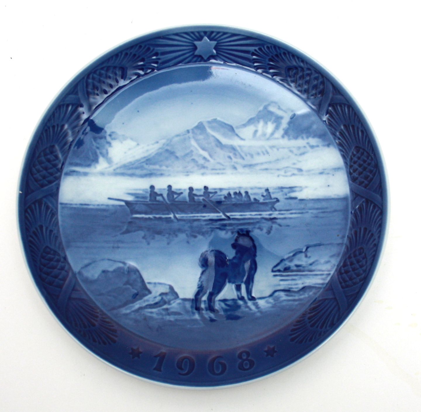 Royal Copenhagen, Juleplatten 1968 "Den sidste konebåd" af Kaj Lange. Diameter 18 cm. 1. sortering. Pris: 100 kr.