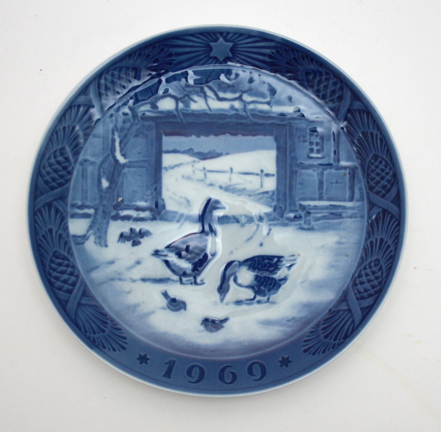 Royal Copenhagen, Juleplatten 1969 "I den gamle bondegård" af Kaj Lange. Diameter 18 cm. 1. sortering. Pris: 100 kr.