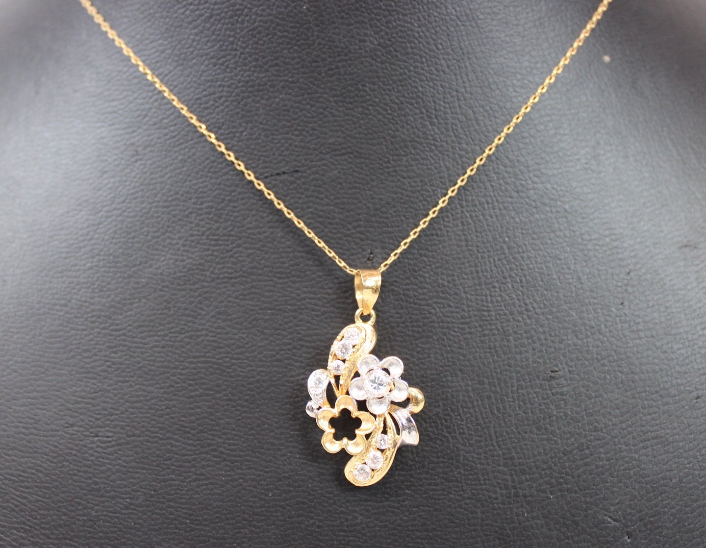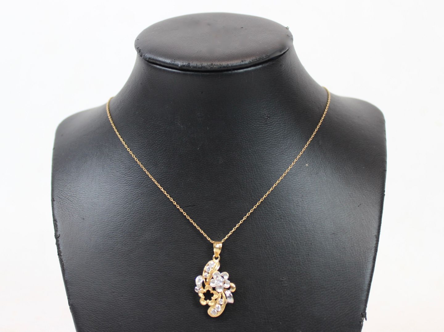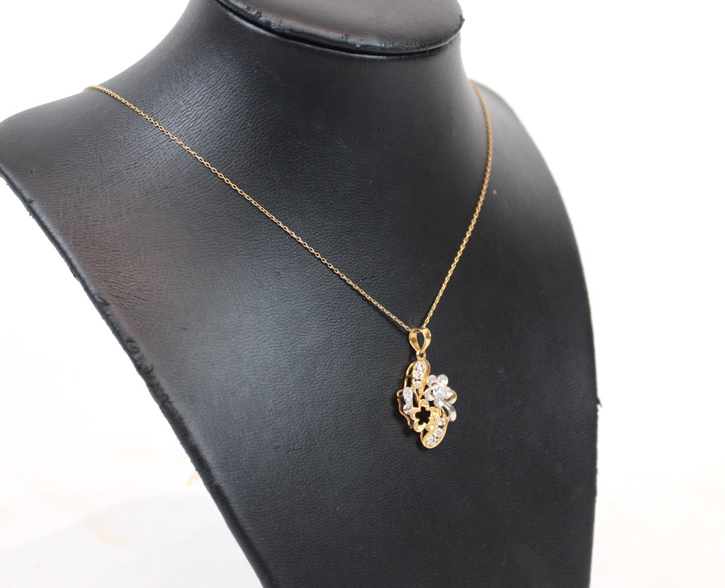 Pendant of 18 carat gold decorated with clear stones. The jewel is in great vintage condition.