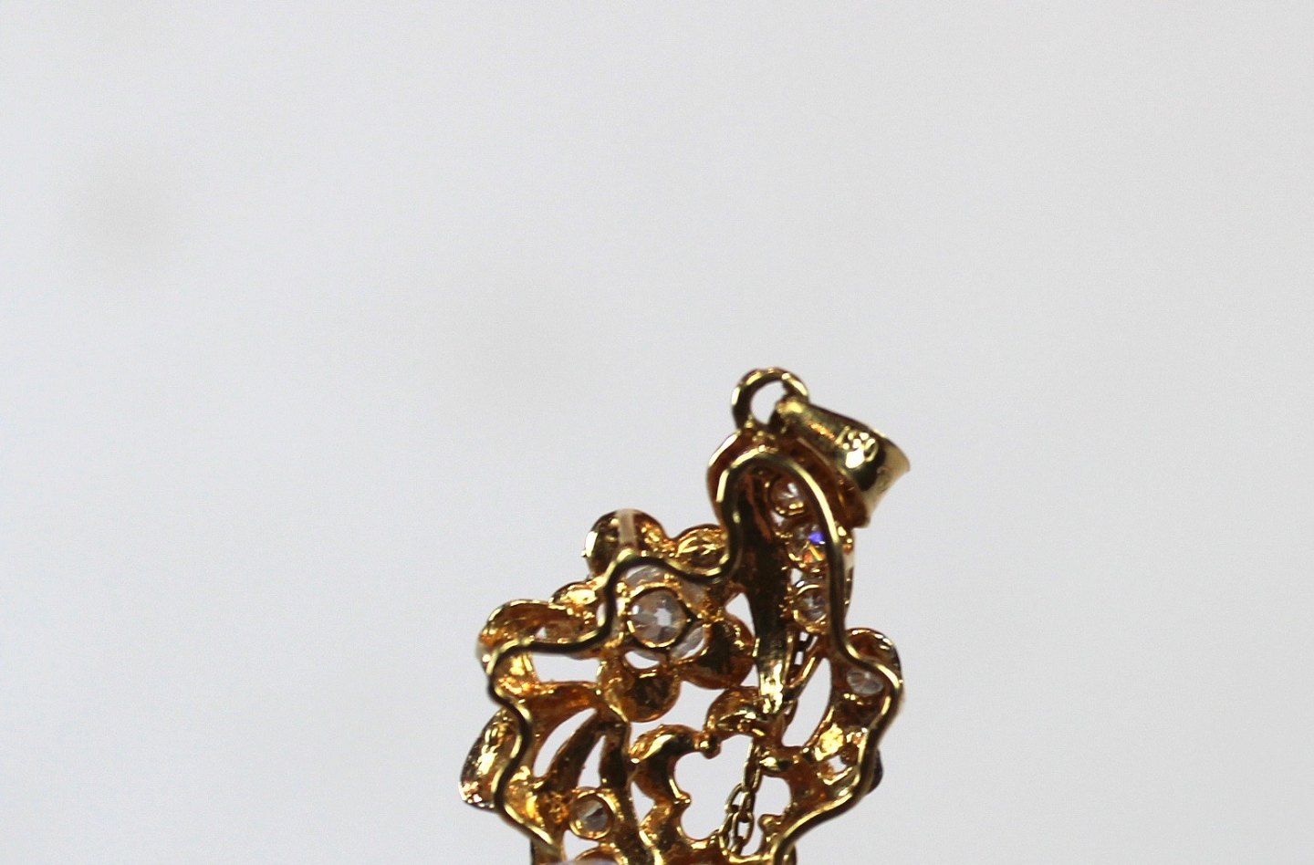 Pendant of 18 carat gold decorated with clear stones.