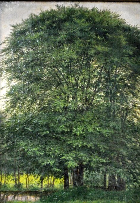 Scheuermann, Carl Georg (1803 - 1859) Danmark.: Træer ved et åløb. Olie på lærred/pap. Usigneret. 36 x 26 cm.