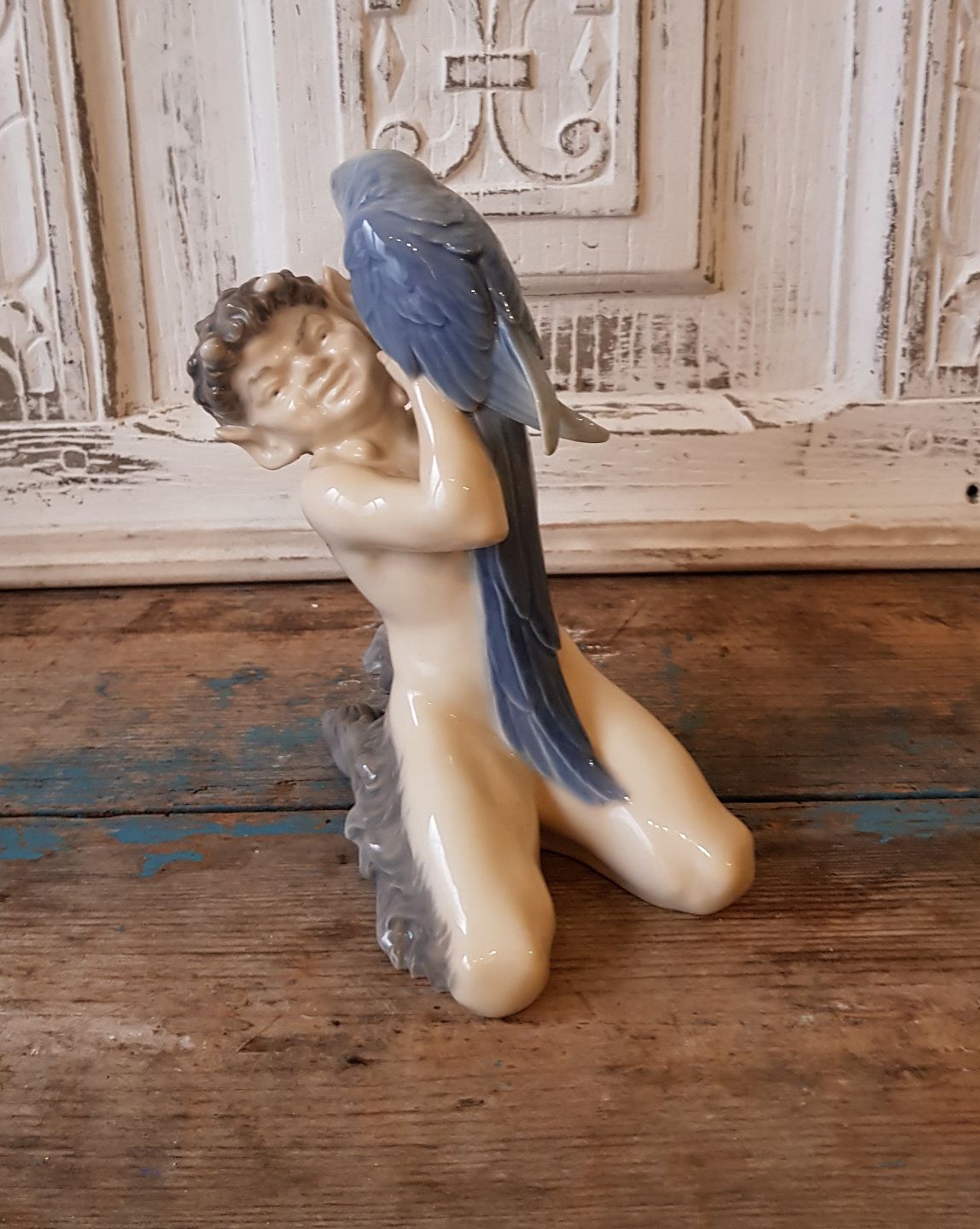 Royal Copenhagen figur - Faun med blå ara no. 752